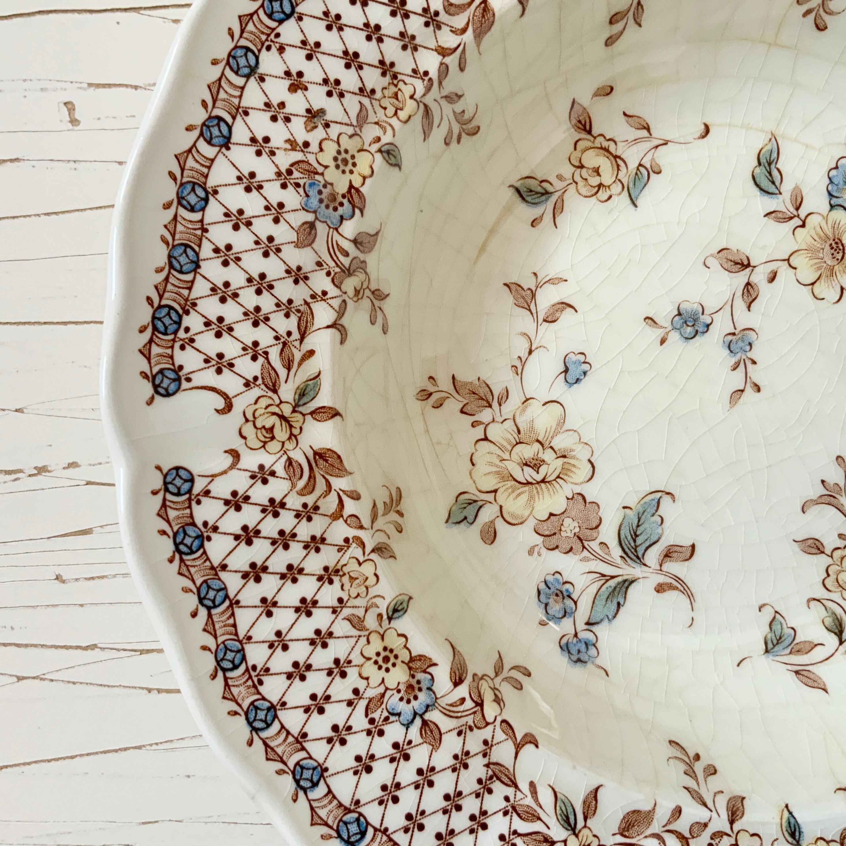 Royal Tudor ブラウンフラワーのスーププレート Lattice