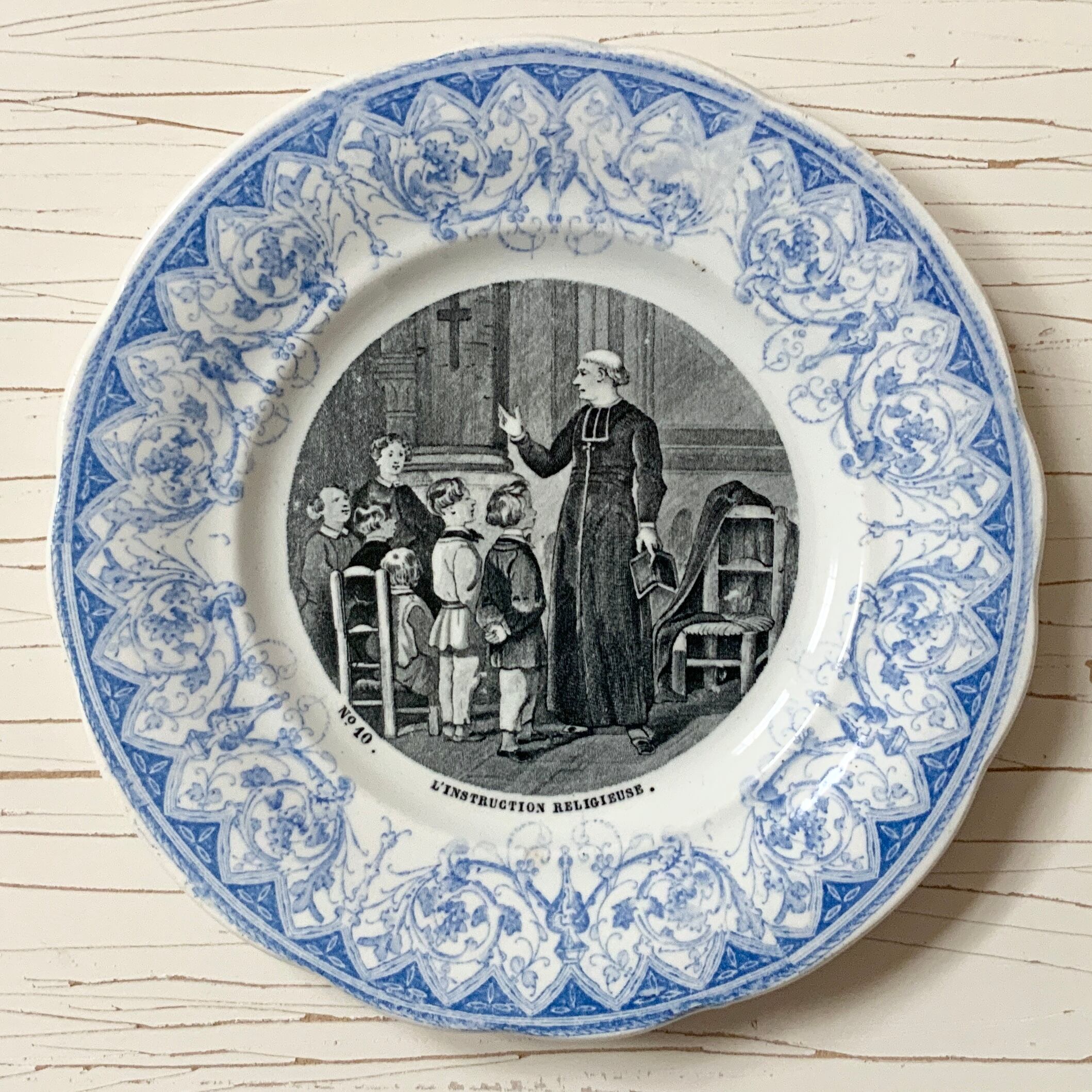 【S様お取置き】Creil et Montereau 神父さまと子どもたちのグリザイユプレート