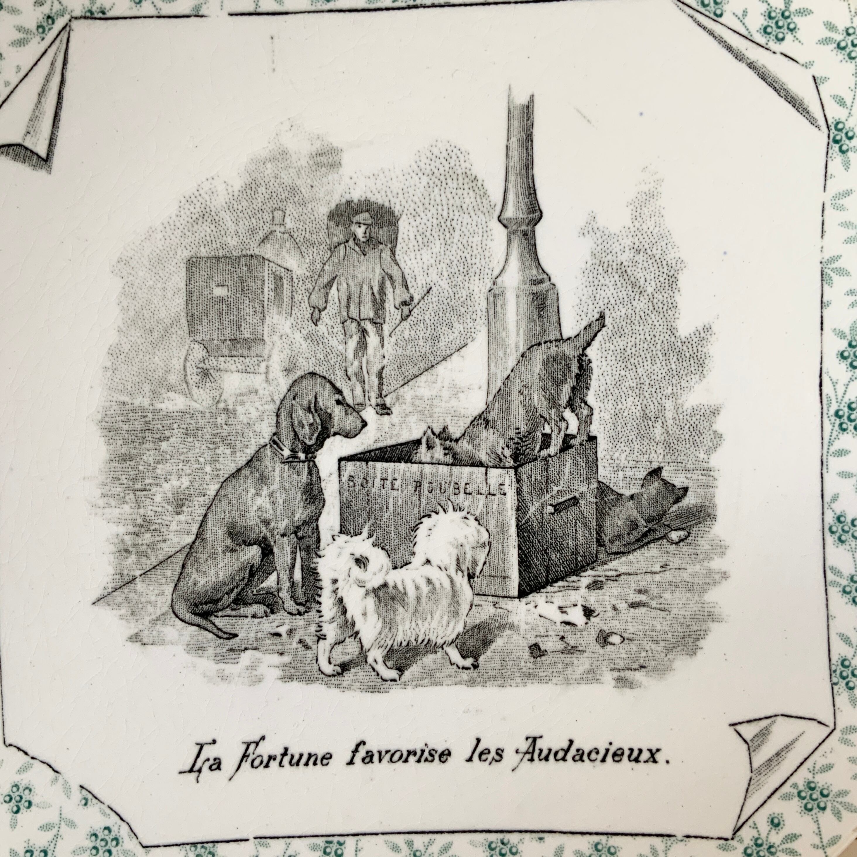 サルグミンヌがOpaque de Sarregueminesだった1875年〜1900年代初頭の間に造られたトーキングプレートです。