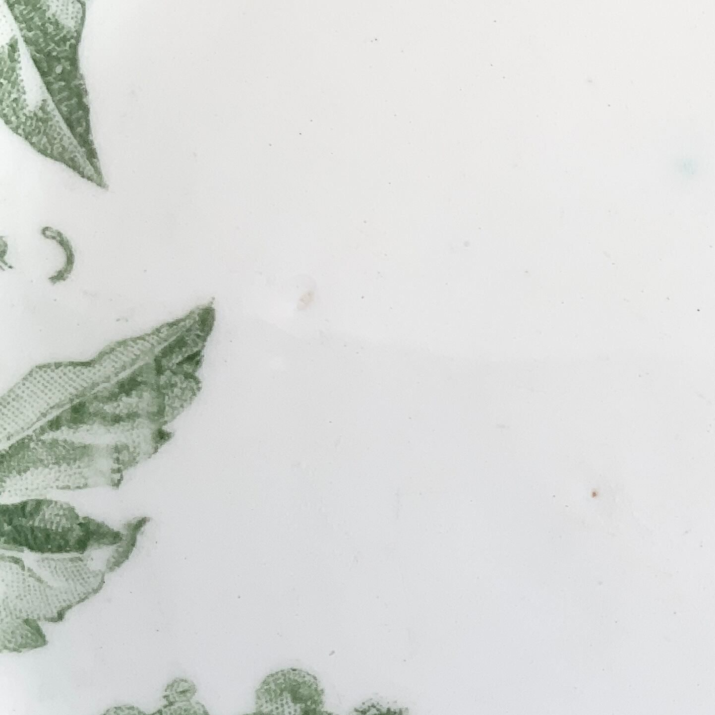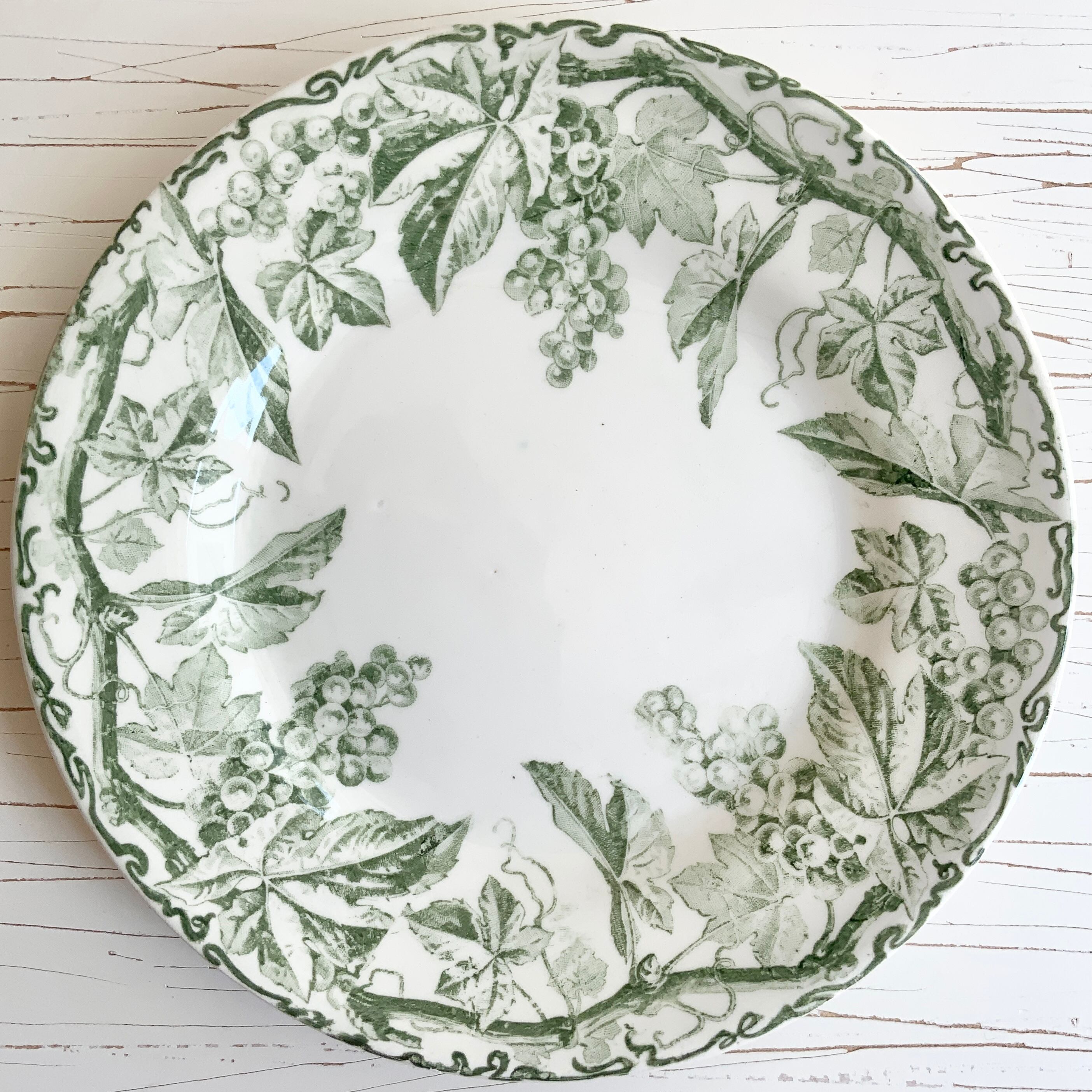 やさしい白地に美しいグリーンでぶどうのガーランドが、プレート全体を囲うように描かれています。