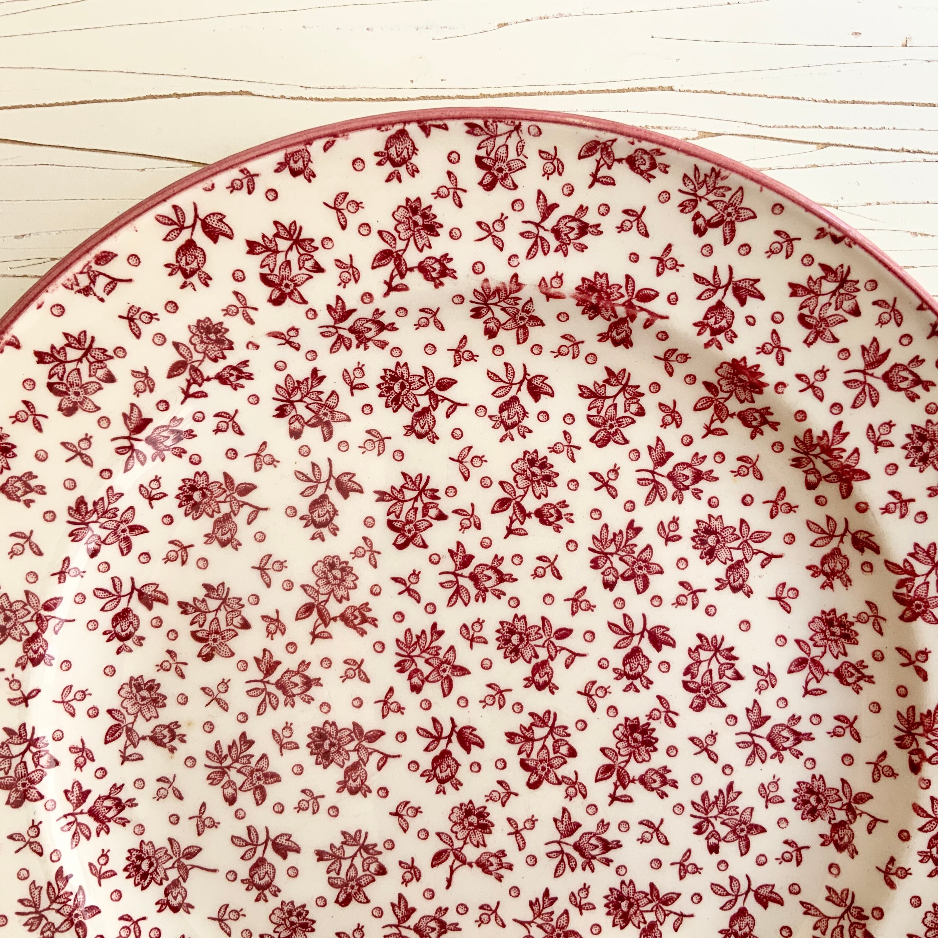 Petrus Regout 赤い小花のチンツ柄デザートプレート