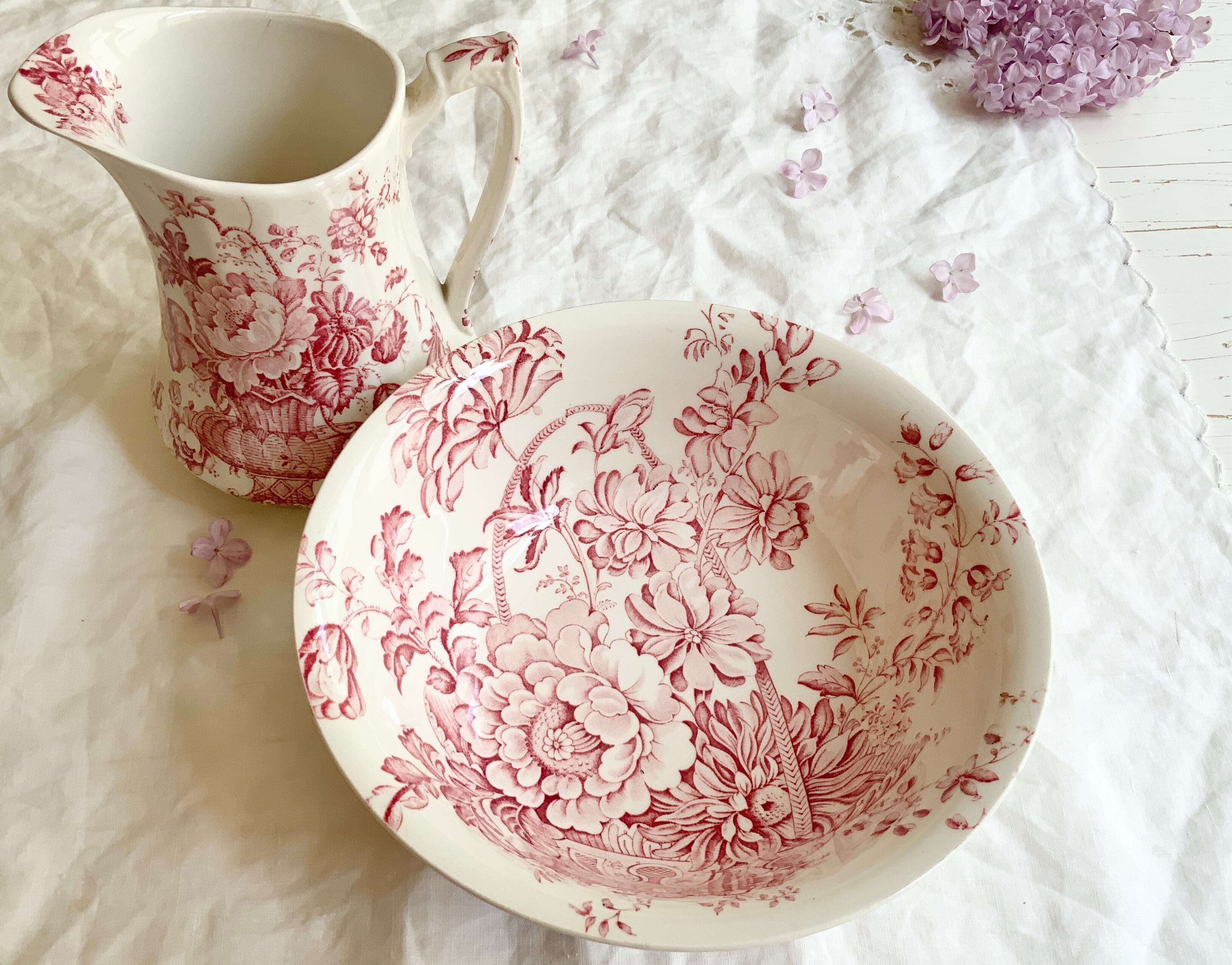 【H様お取置き】Alfred Meakin お花とパニエのピシェ&ボウルセット Charlotte