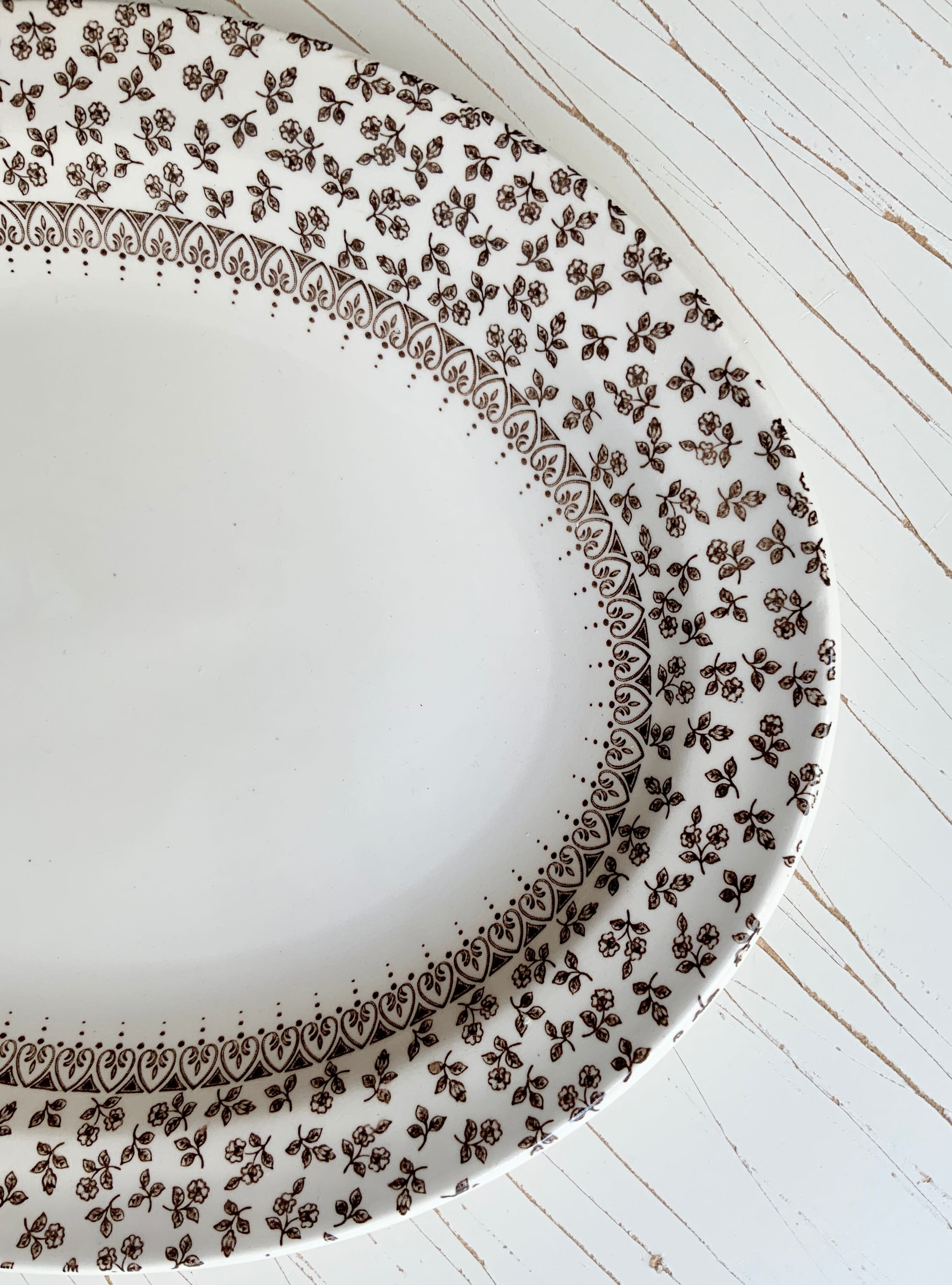 English Ironstone ブラウンの小花とハートのチンツ柄オーバルプレート