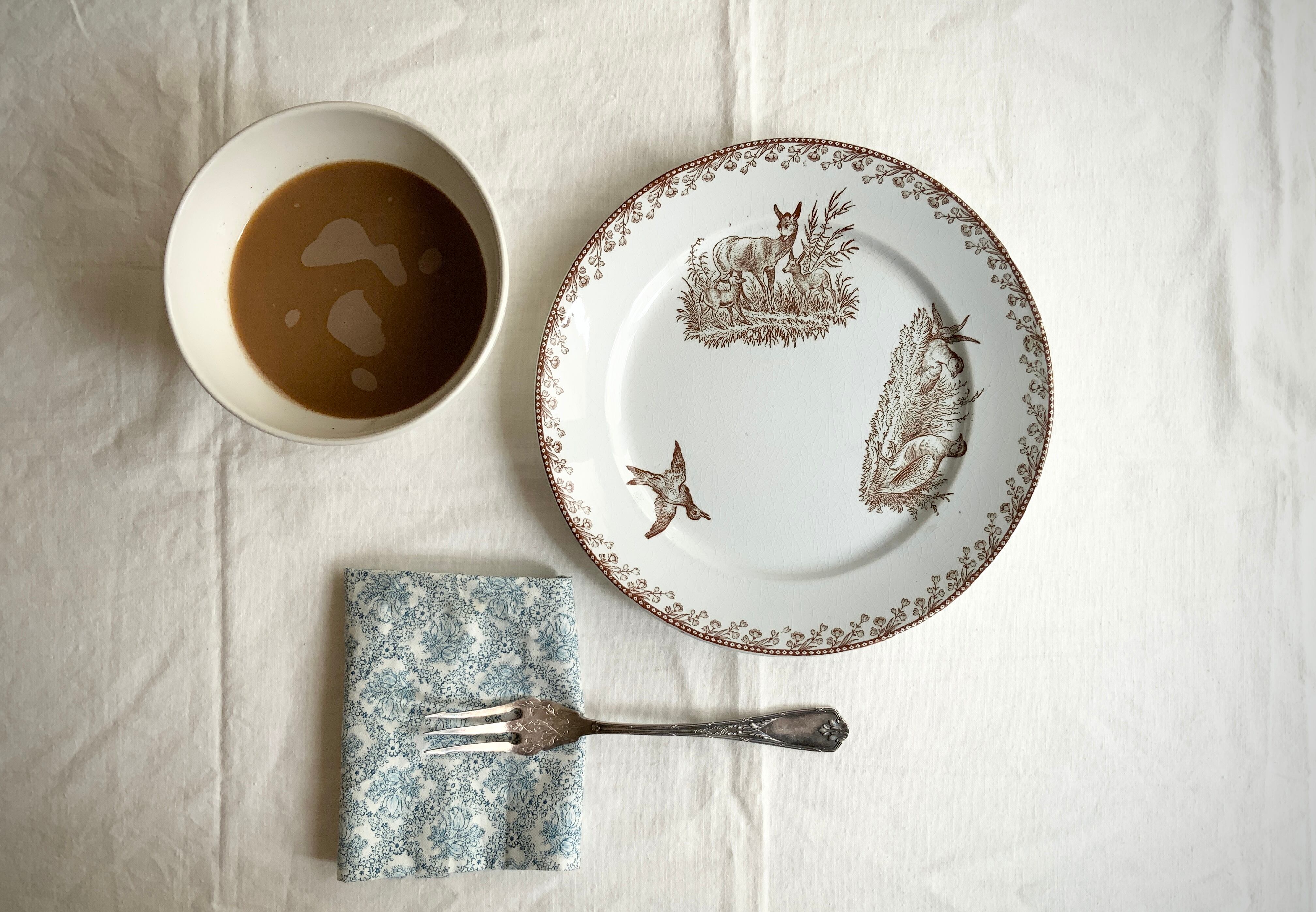 1890〜1920年頃F.F.Pexonneが手掛けたchasseシリーズのデザートプレートです。