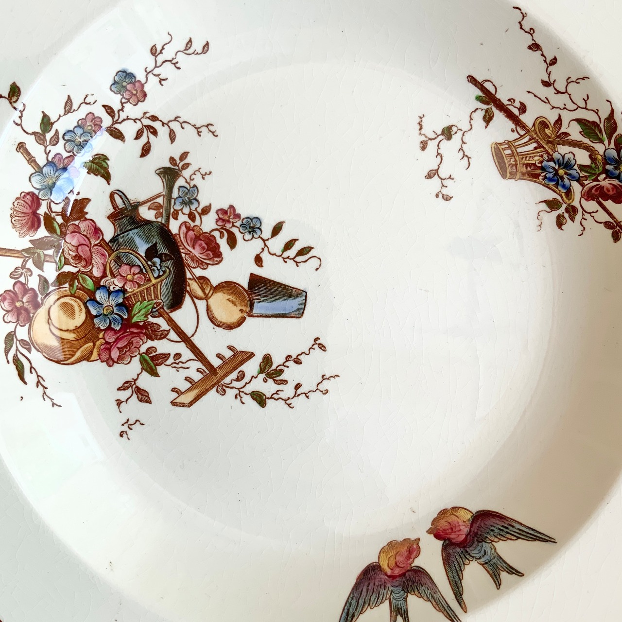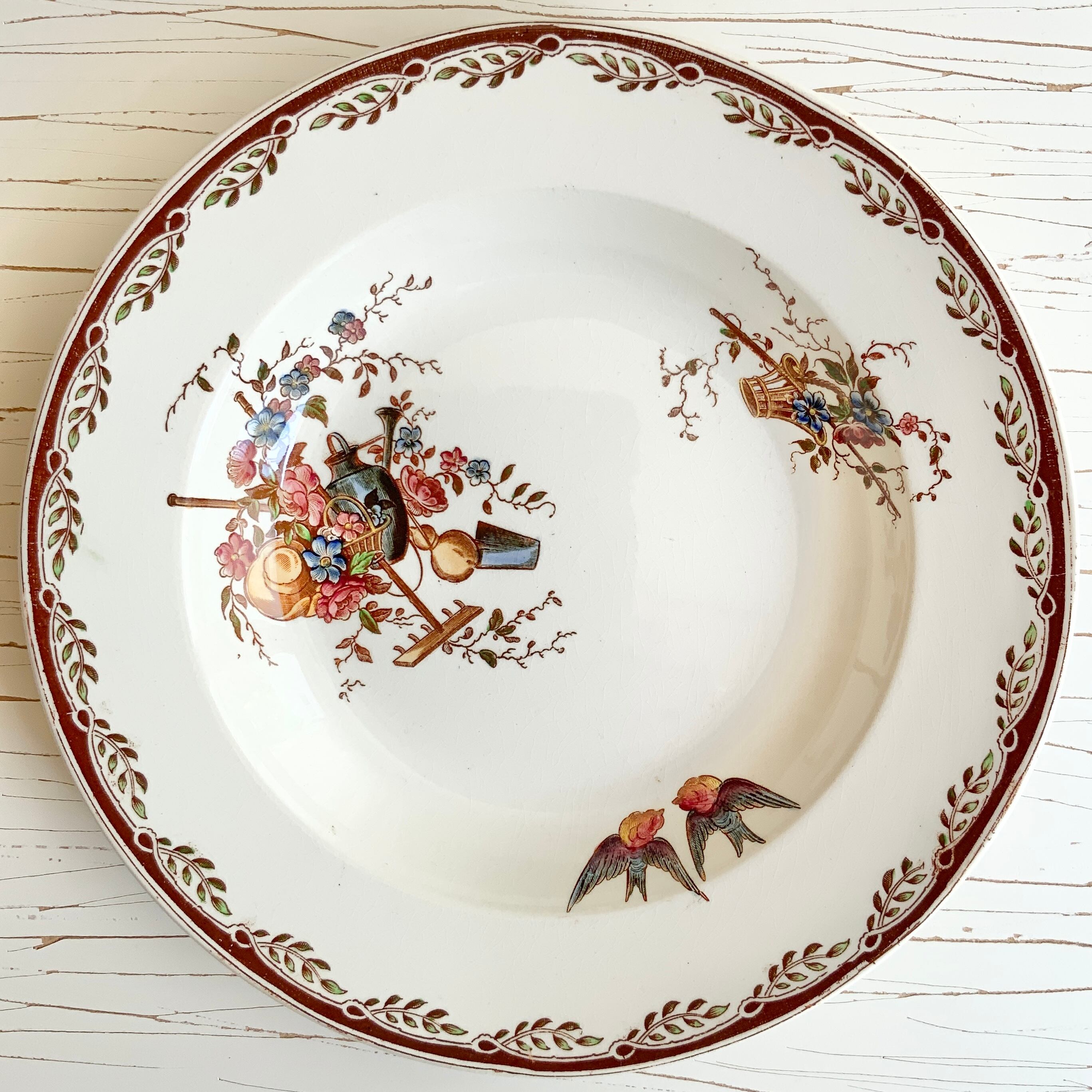 Sarreguemines 庭仕事と青い鳥のスーププレート Watteau