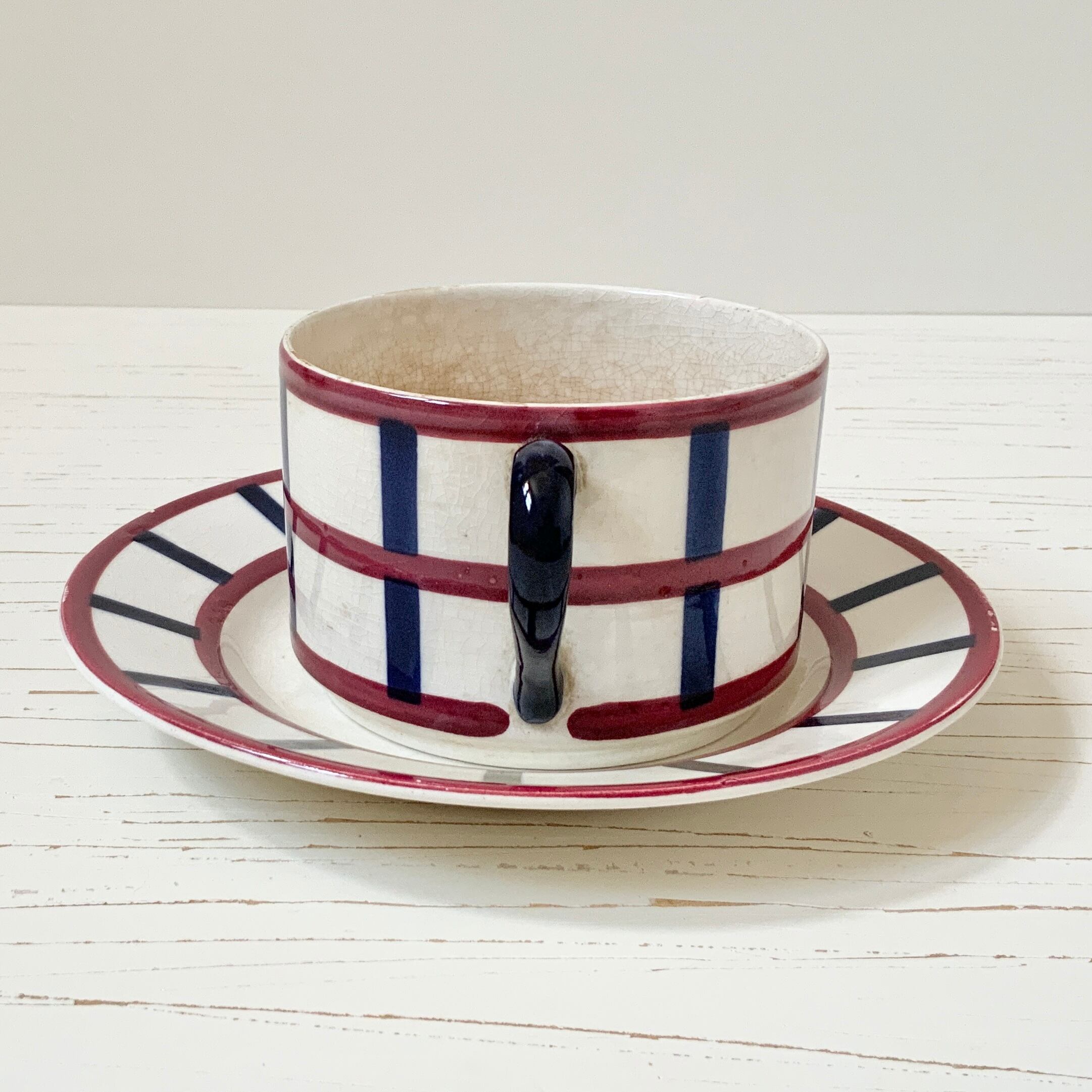 【たっぷりサイズ】Creil et Montereau HBCM バスク柄ショコラカップ&ソーサー Bearn