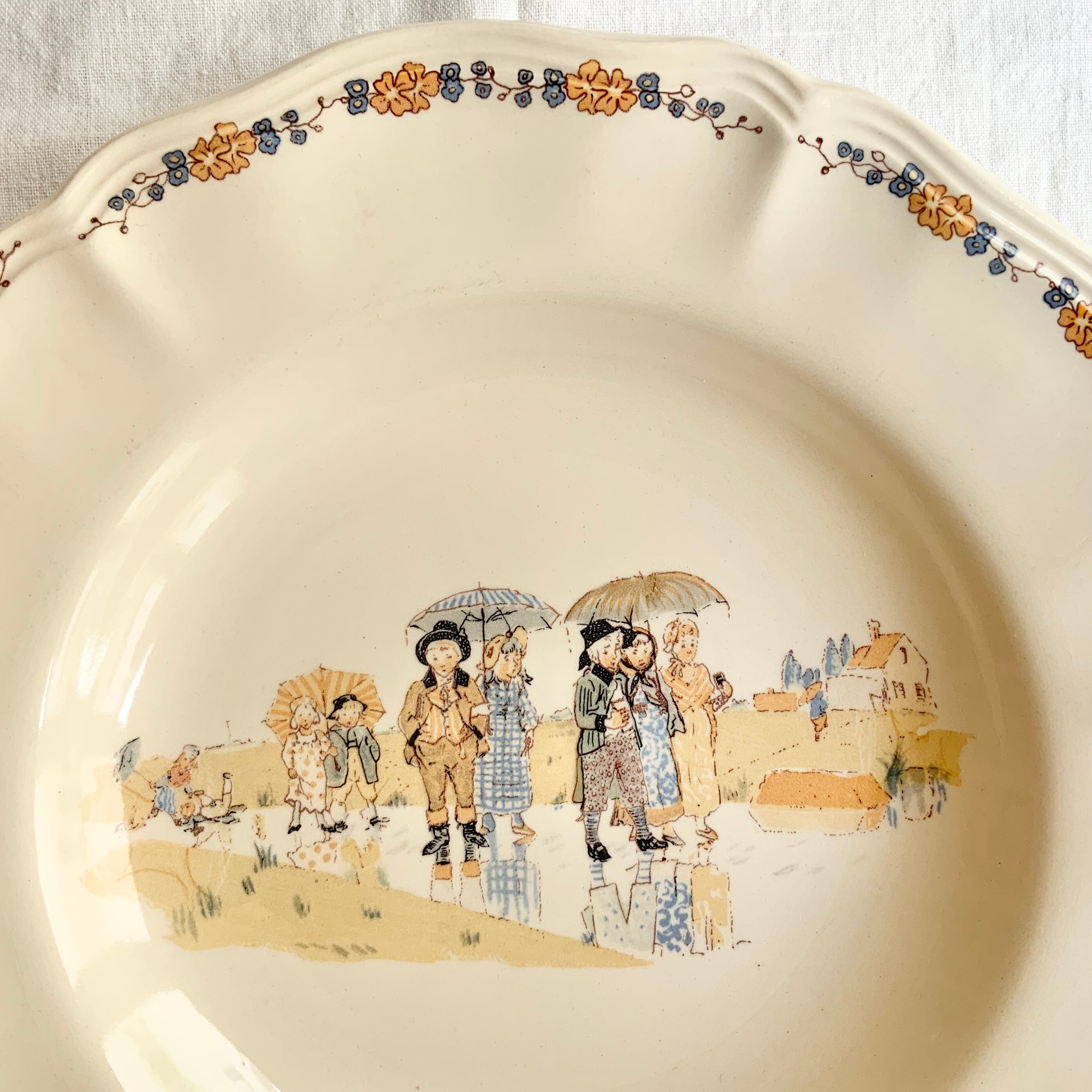 Sarreguemines 雨の帰り道のスーププレート Enfants Richard