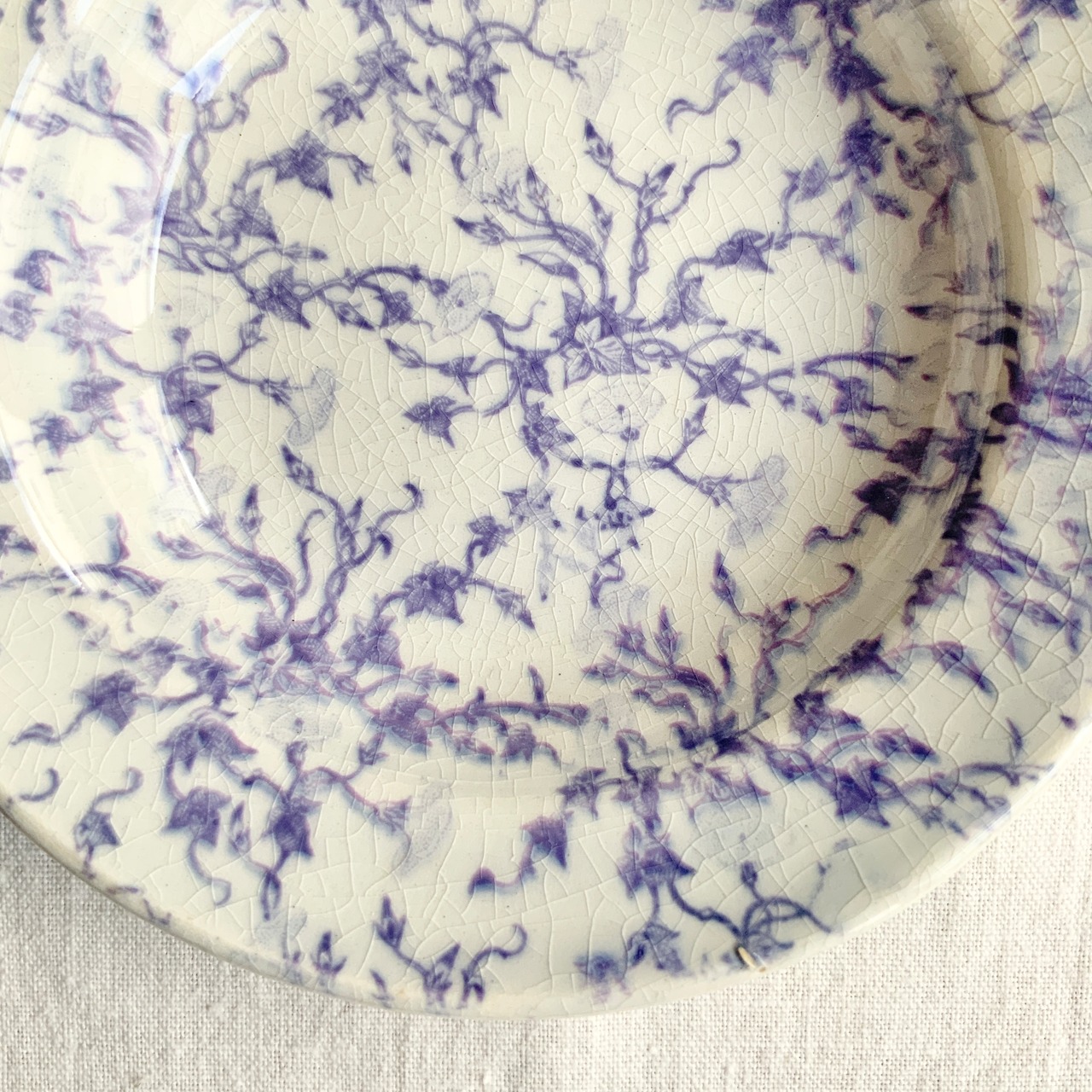 美しいラベンダー色でプレート全体にアサガオの花と蔓が描かれています。