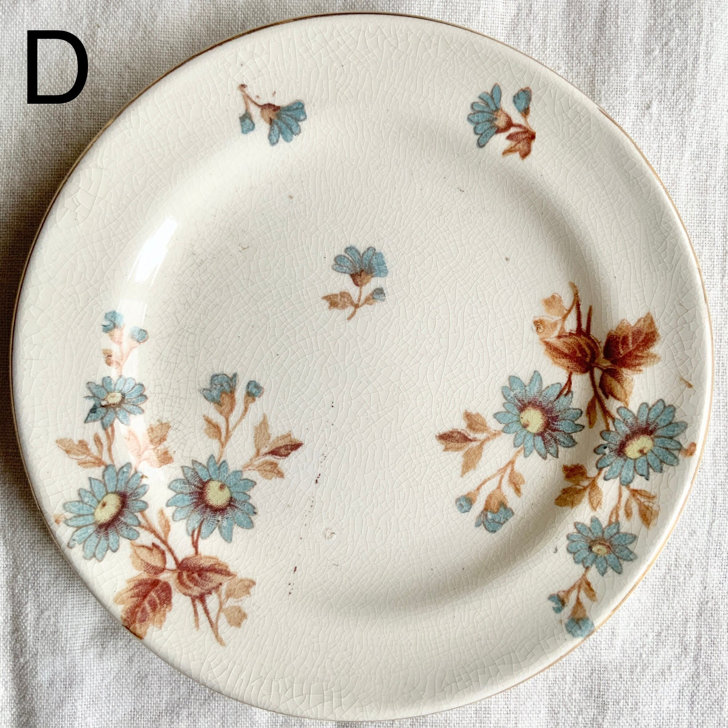 やさしいブラウン、ブルー、イエローでマムが愛らしくプレート全体に散りばめられています。