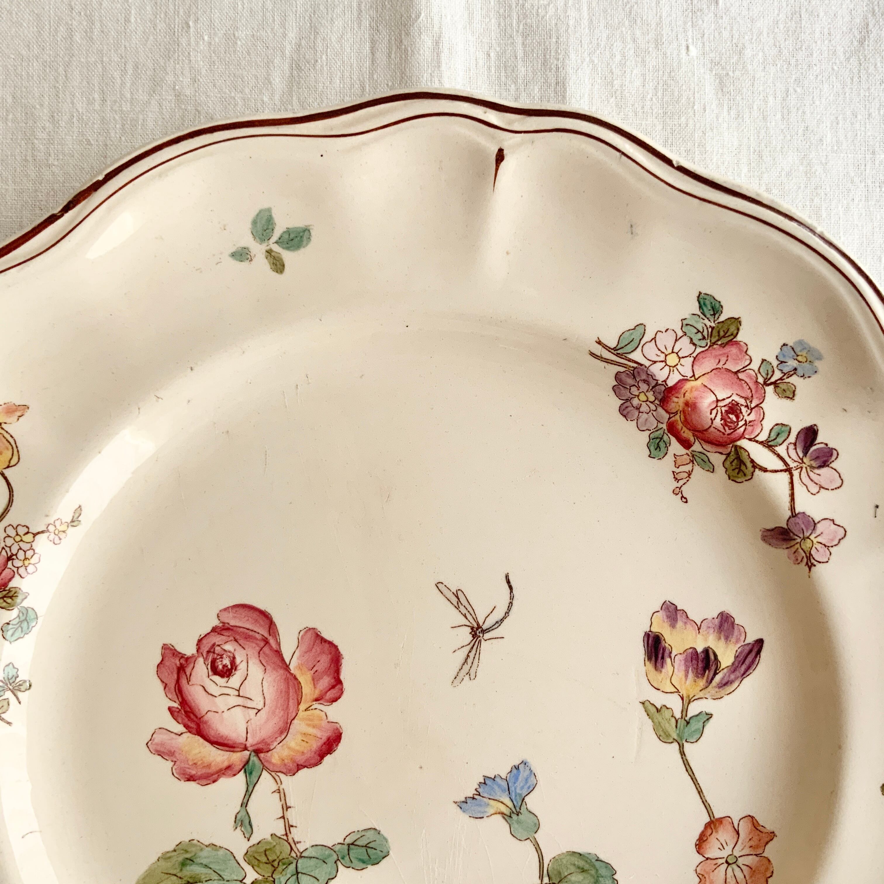 フラワーリムの縁には落ち着いたブラウンのダブルラインと、可愛く小さな葉っぱが散らされています。