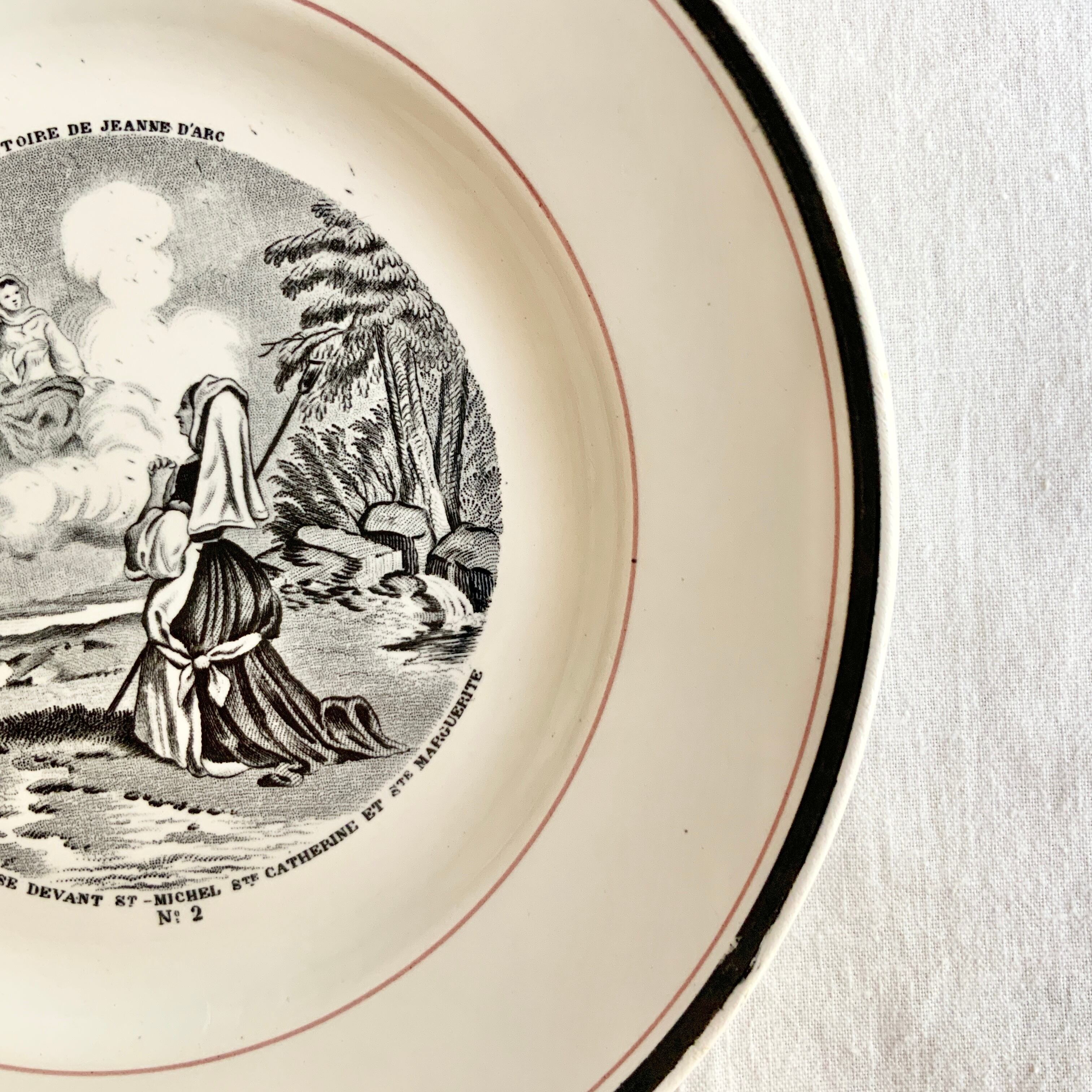 1860~1871年頃のGien、Histoire de Jeanne D’arcシリーズのグリザイユプレートです。