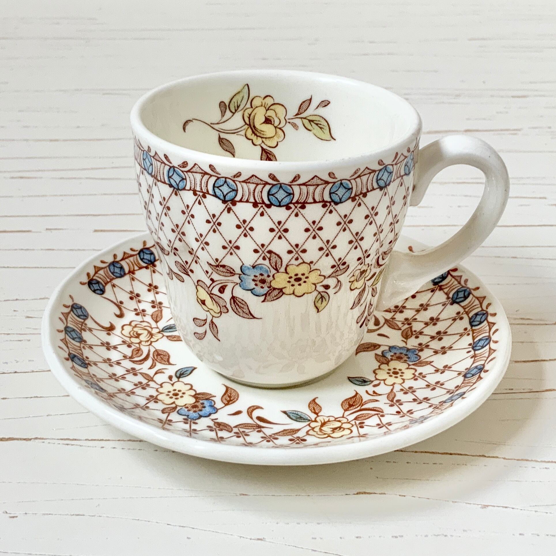 【T様お取置き 1/28】Royal Tudor ブラウンフラワーのコーヒーカップ&ソーサーLattice