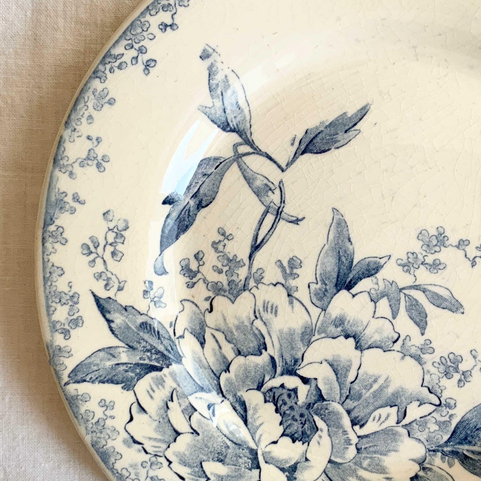 やわらかい乳白色に美しいブルーで大きな芍薬の花が描かれています。