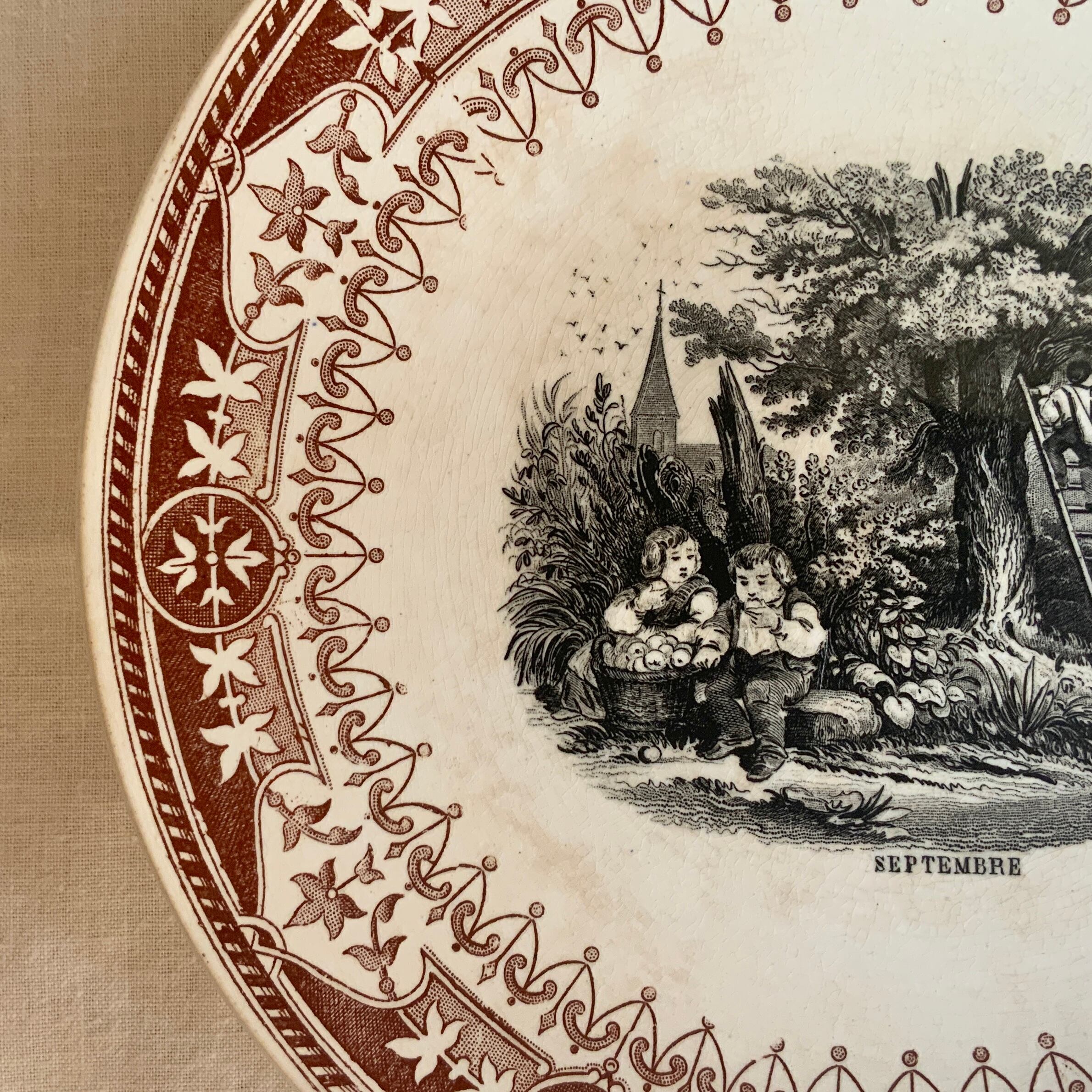 【UC様お取置き】Sarreguemines セピア色の子どもたちのグリザイユプレート