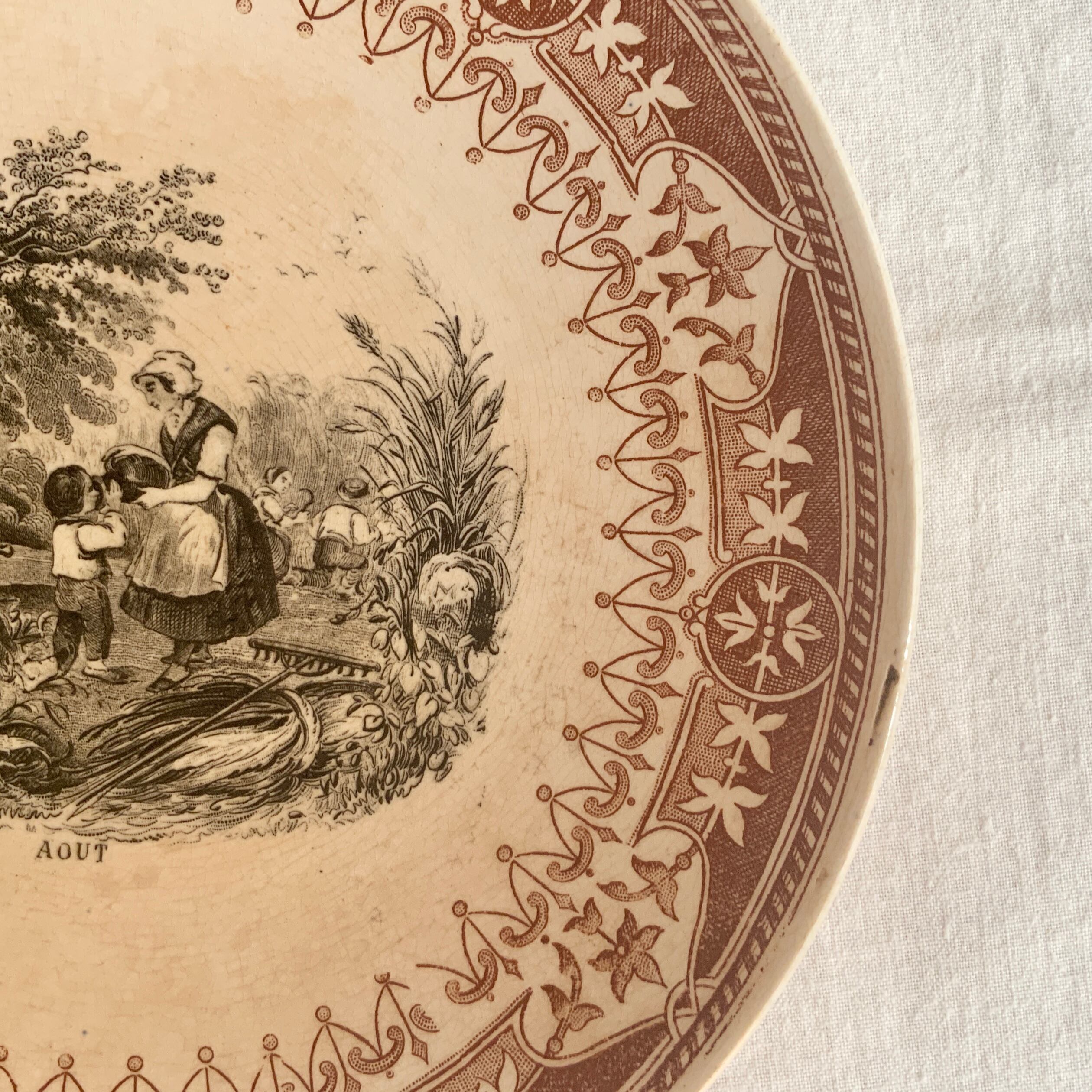 1800年代後半〜1900年代初頭頃、Digoin Sarregueminesのグリザイユプレートです。