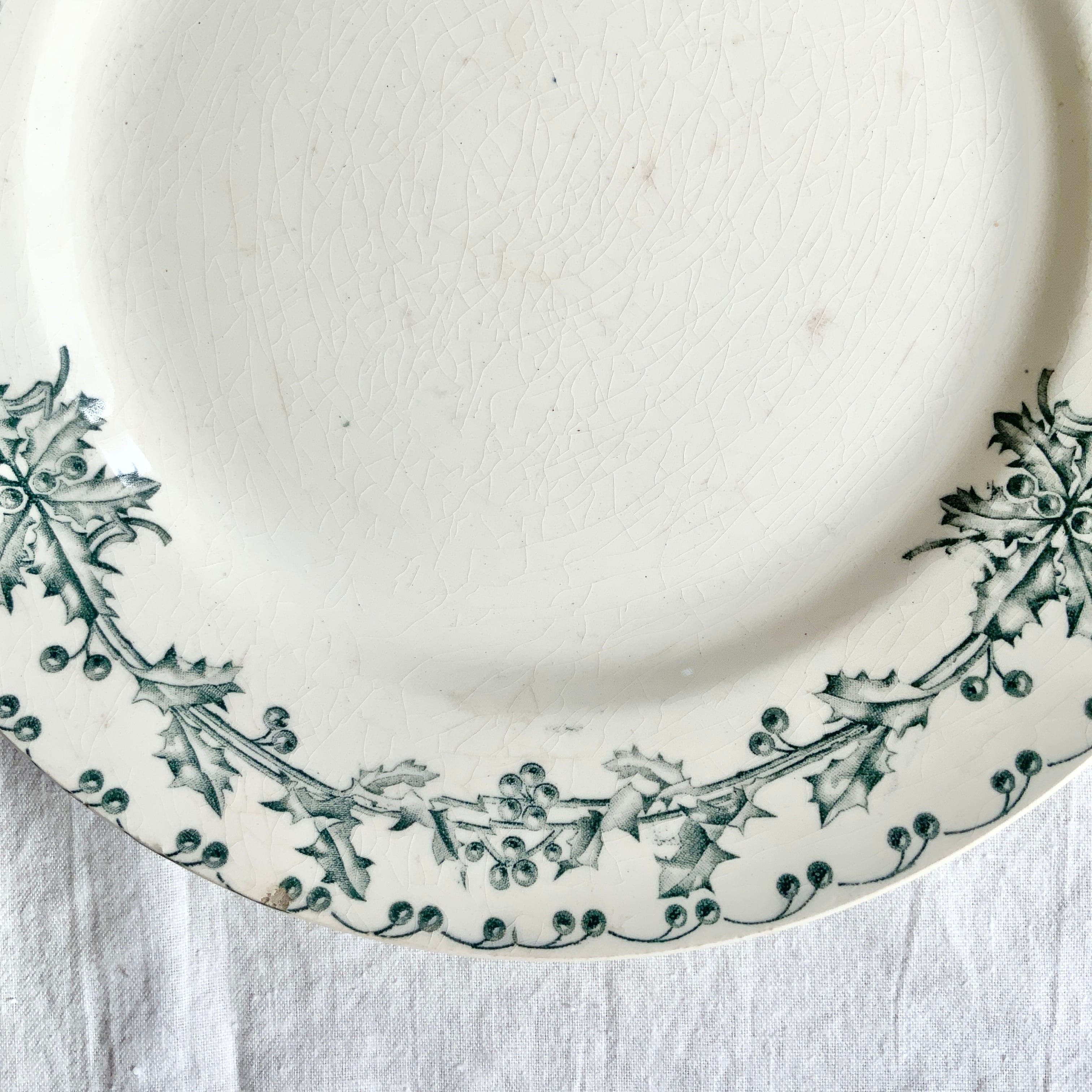 やさしい乳白色にグリーンがかったブルーでヒイラギの葉と実のガーランド美しく描かれています。