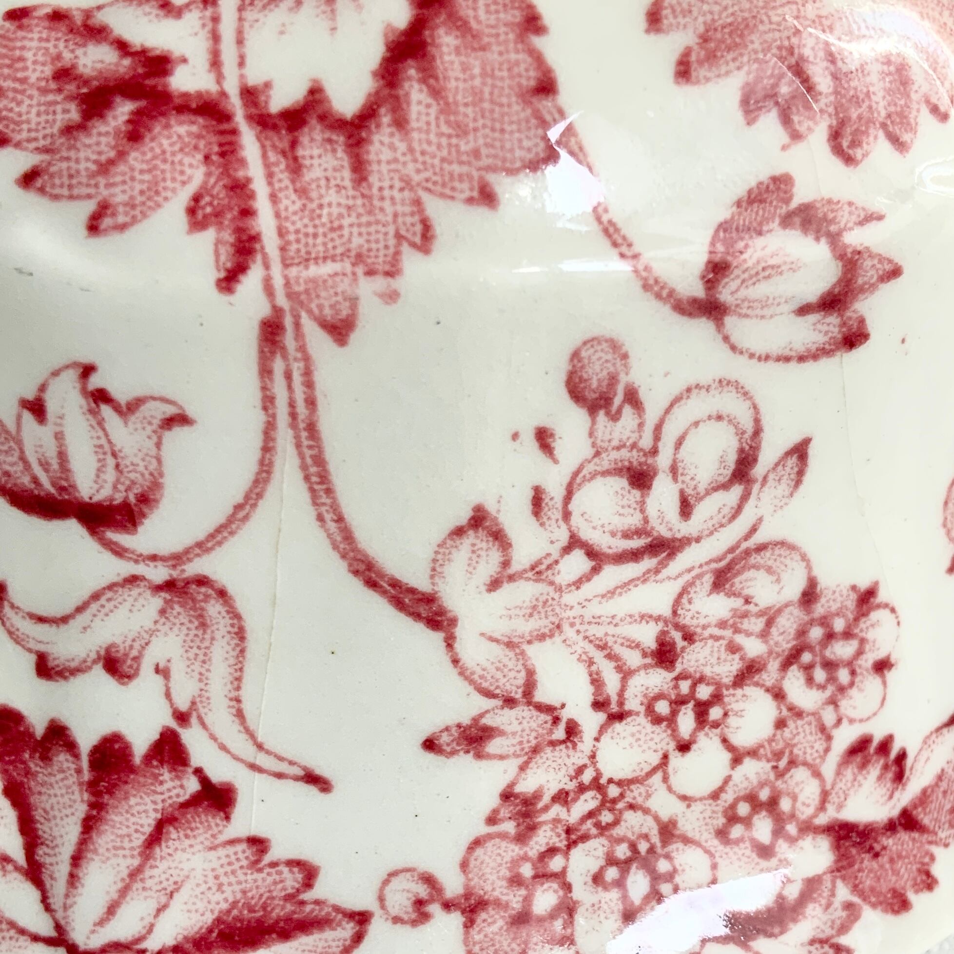 やわらかな白地にピンクがかった赤色で、ベリーの花や葉が全体に描かれています。