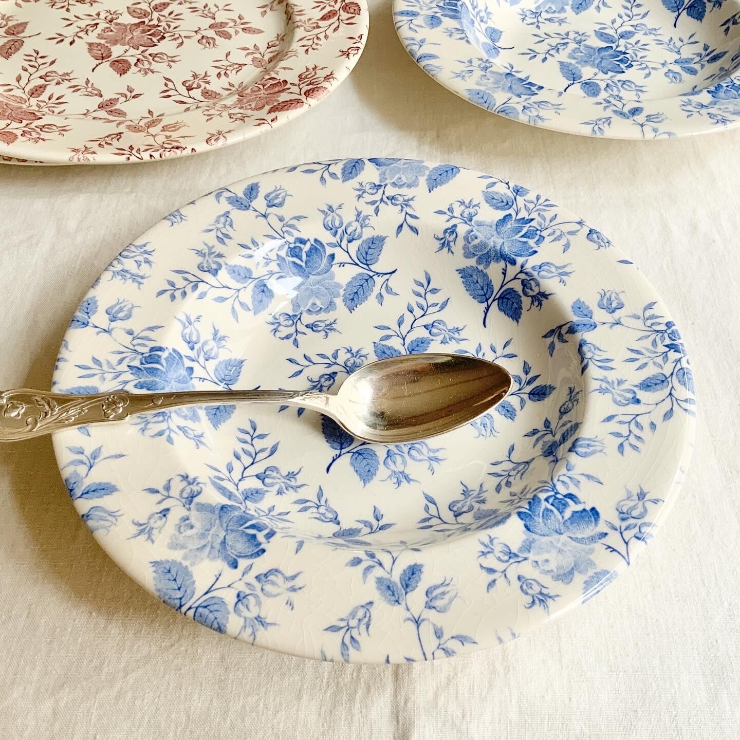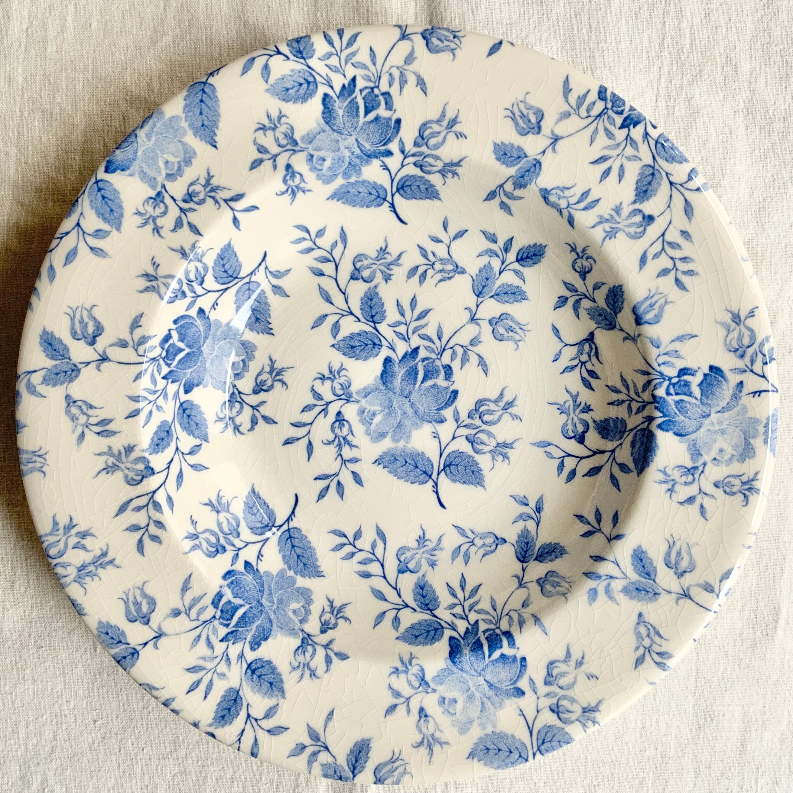 English Ironstone ブルーローズのチンツ柄スーププレートA