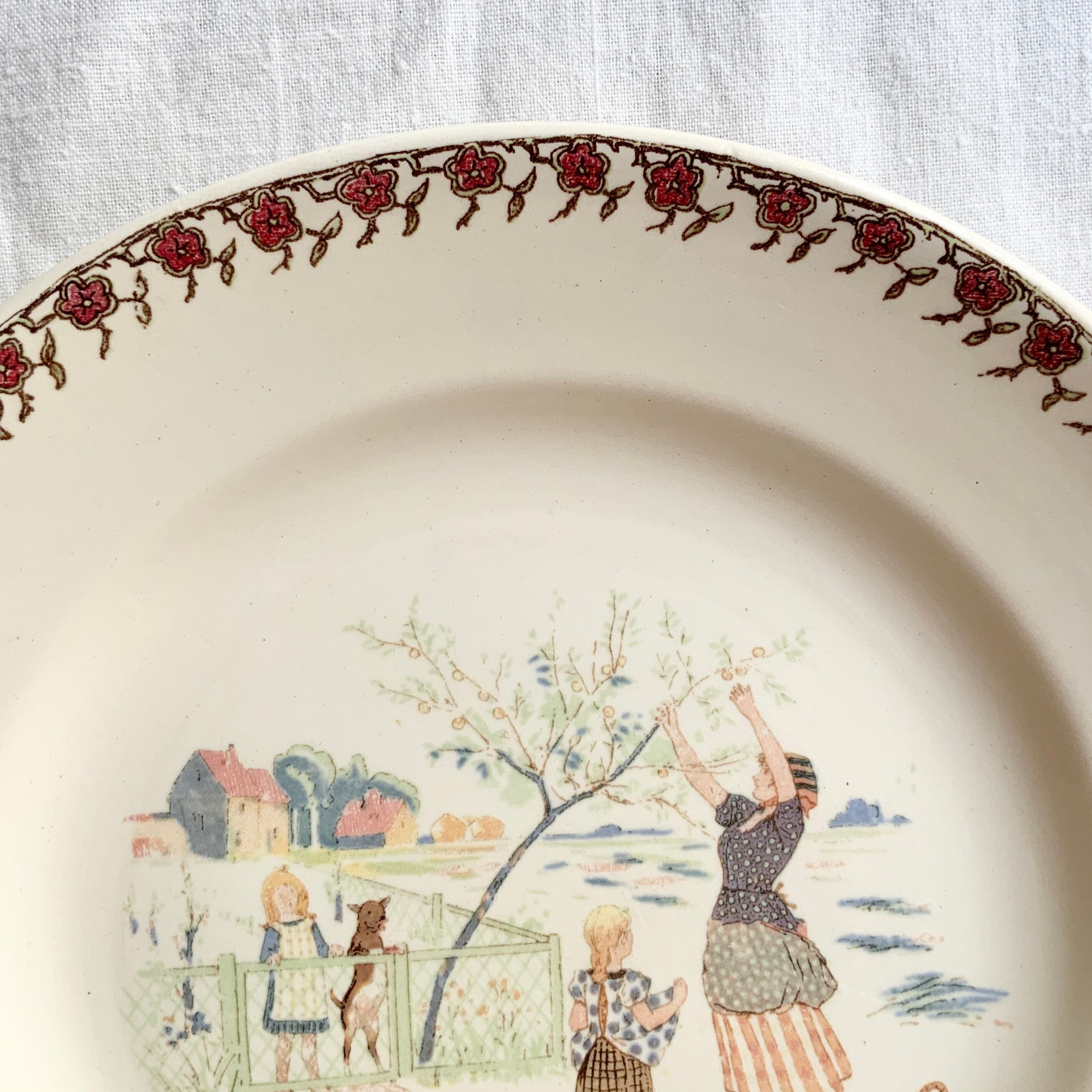 1900年代前半Sarreguemines、Enfants Richardシリーズのデザートプレートです。
