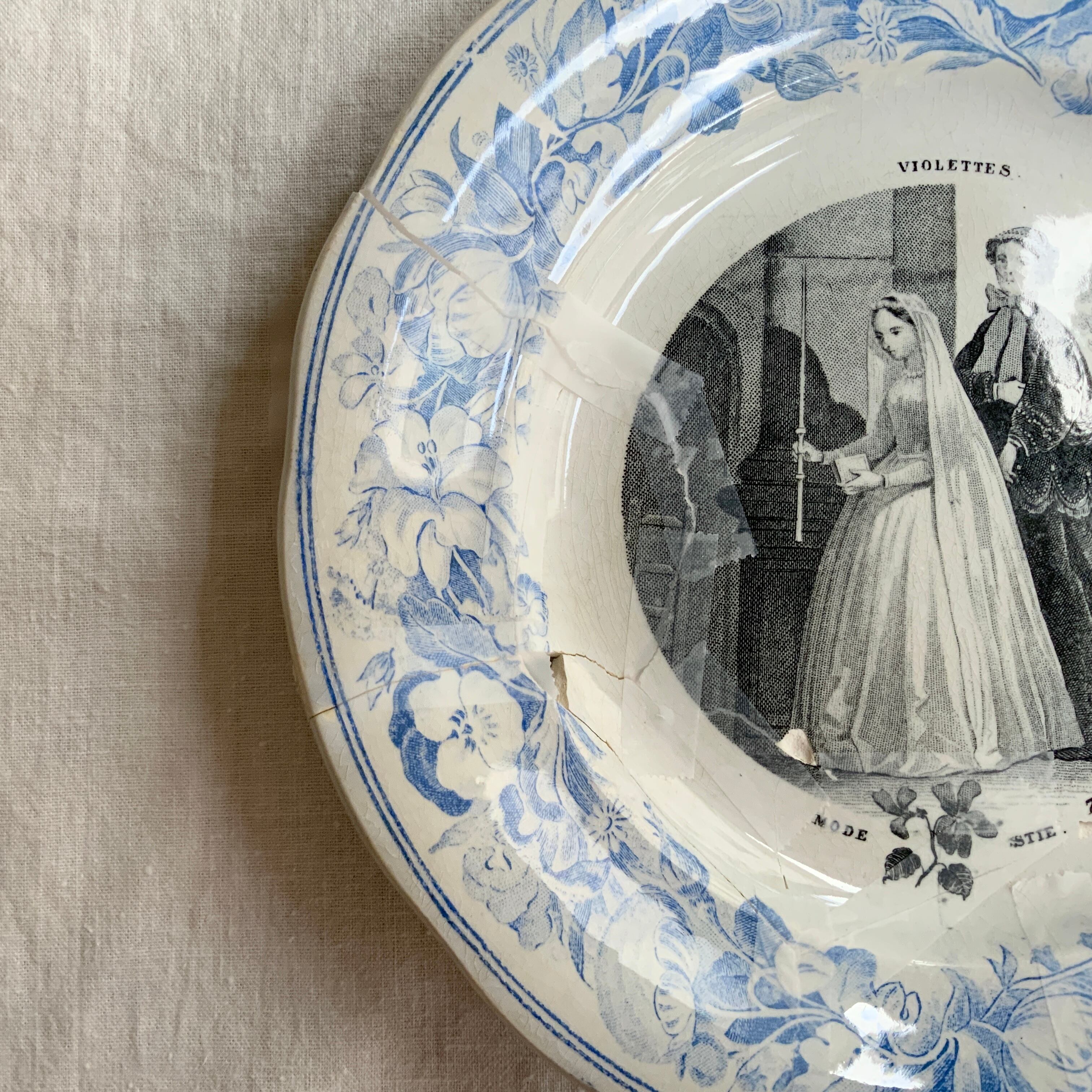 【金継ぎ用】Creil et Montereau スミレのグリザイユプレート