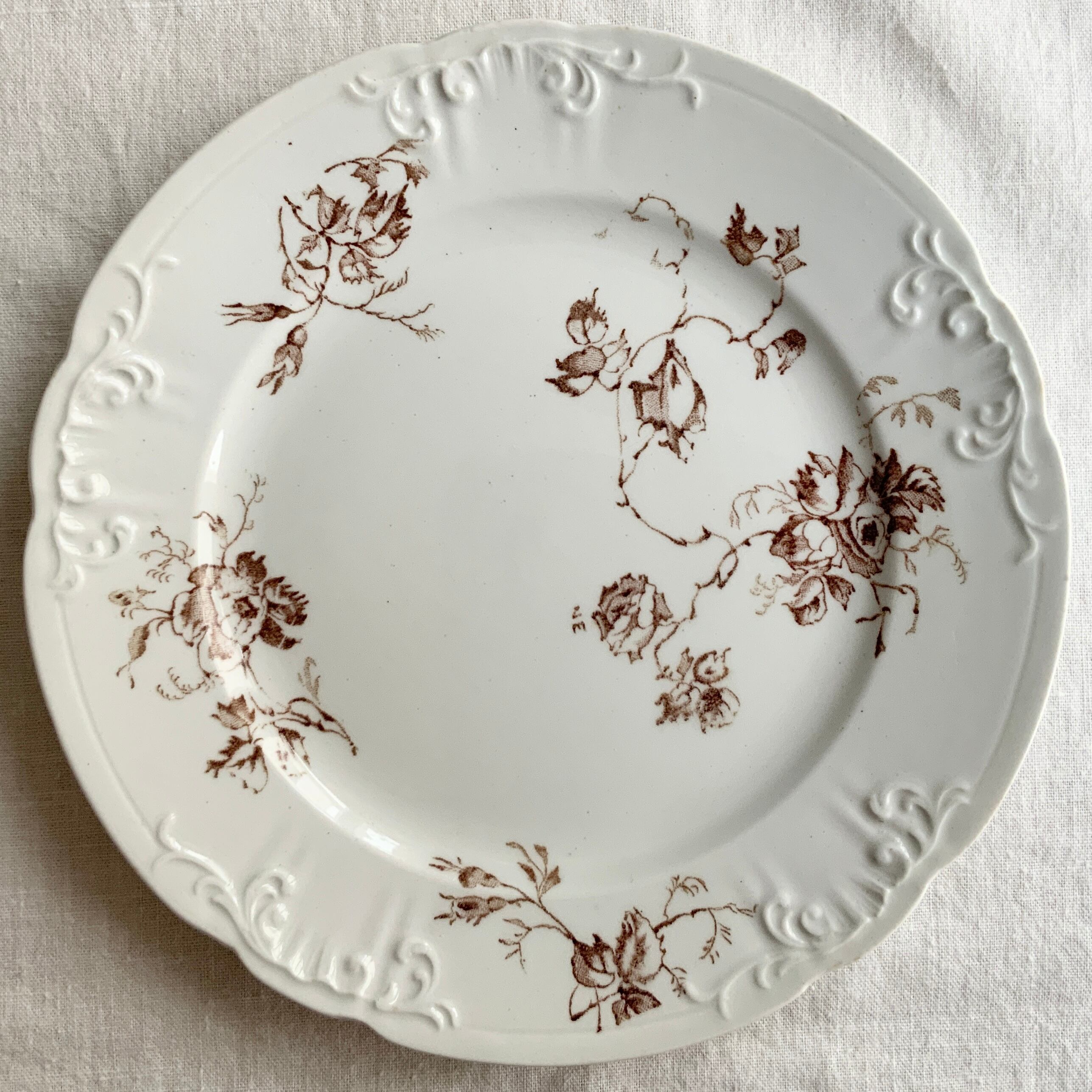 美しい白地に、しっとりとしたブラウンで小さなバラの小枝が散りばめられています。