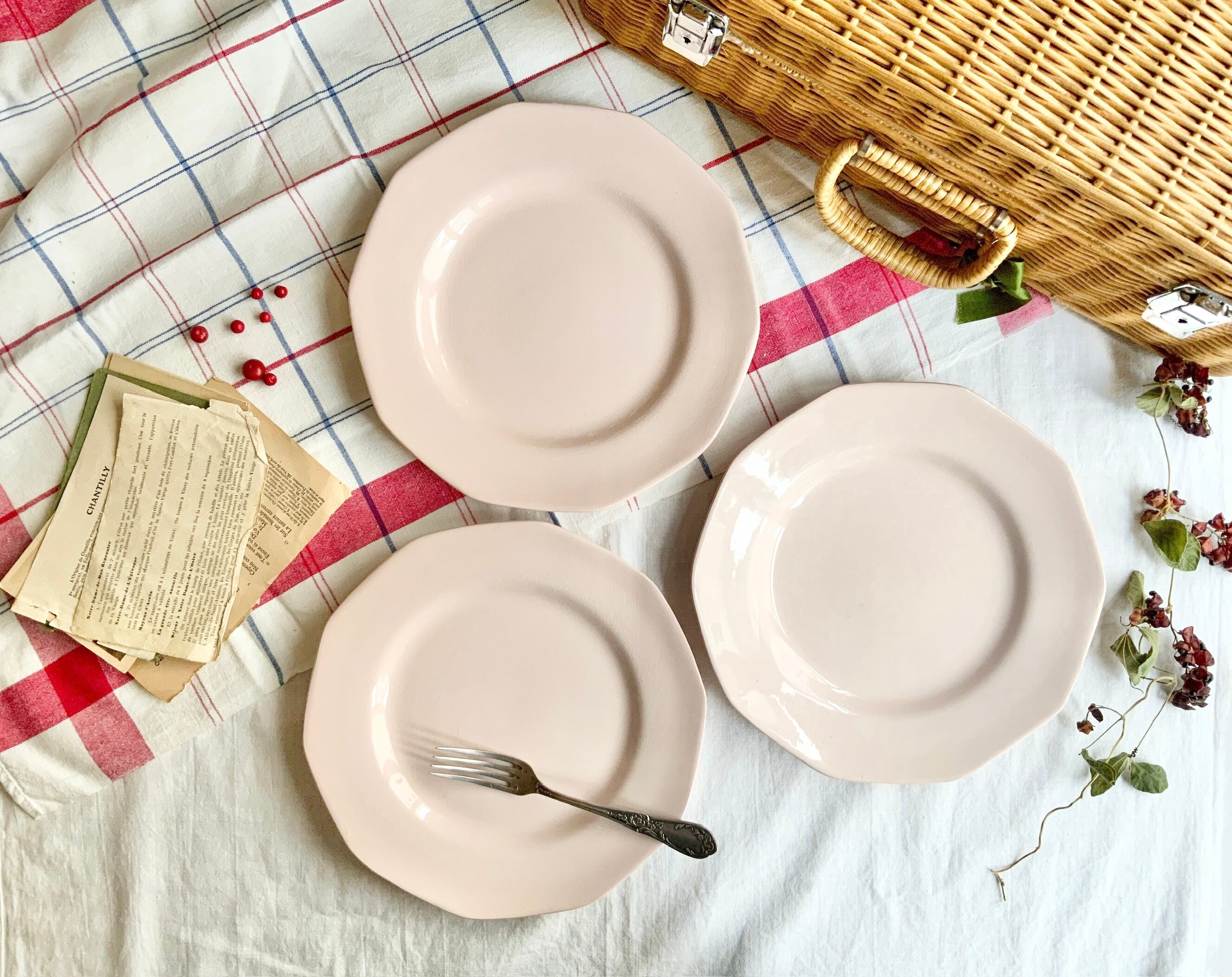 Sarreguemines ピンクの十角形プレート