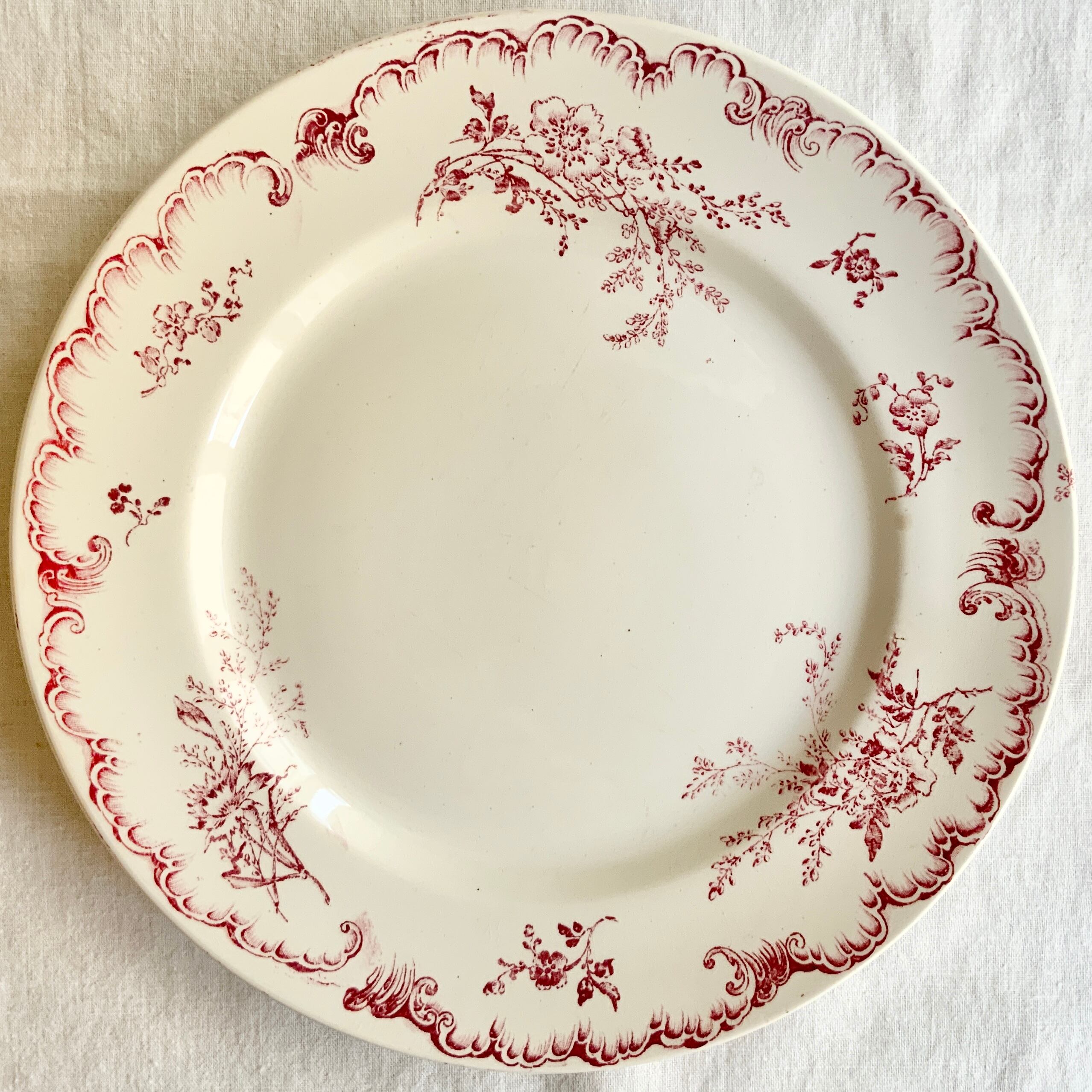 Creil et Montereau 赤いバラとロカイユのプレート Cadix B