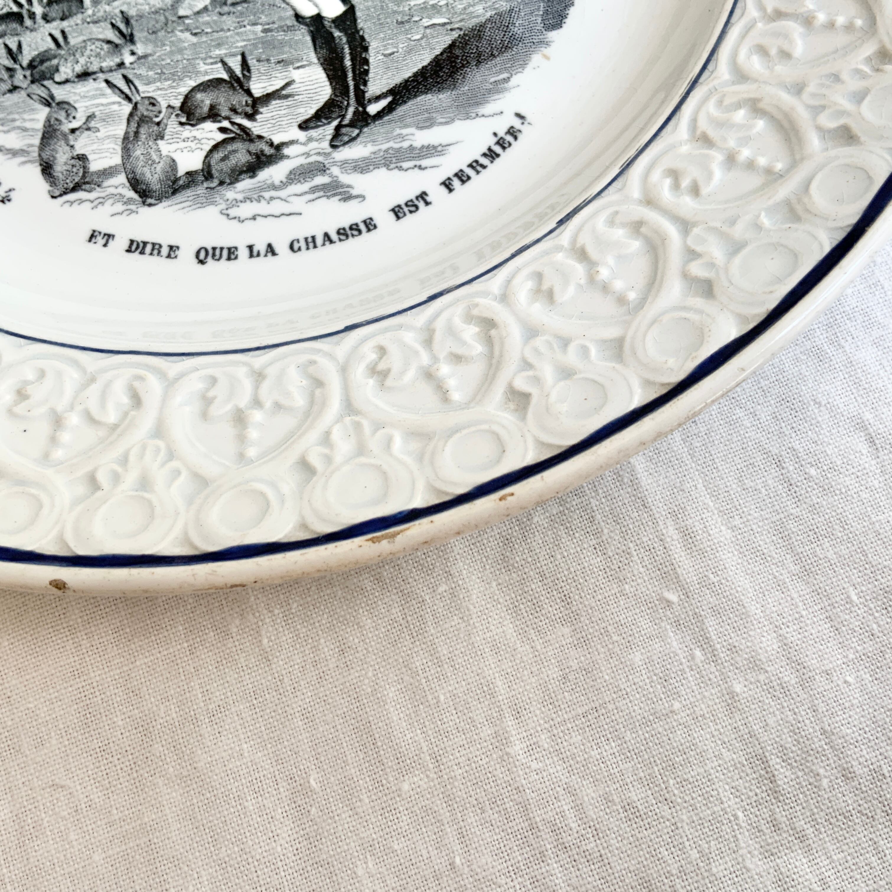 【S.M様お取置き 4/7】Creil et Montereau ウサギのお説教とハートリムのグリザイユプレート
