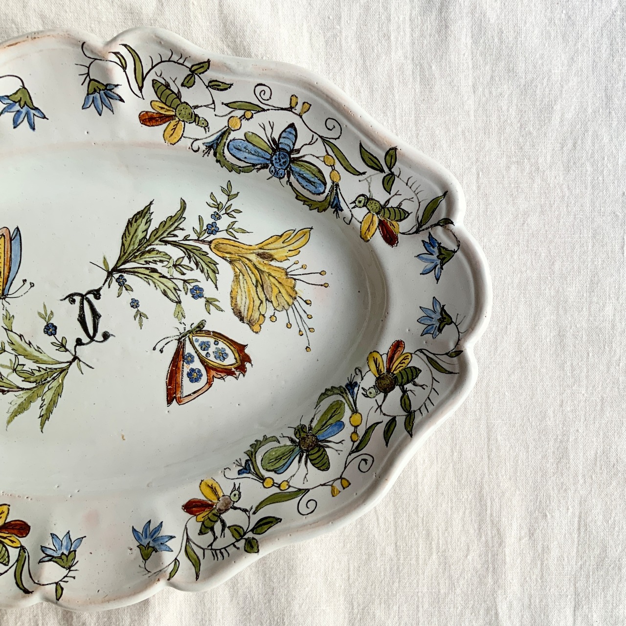 南仏陶器のフラワーリムオーバルプレート