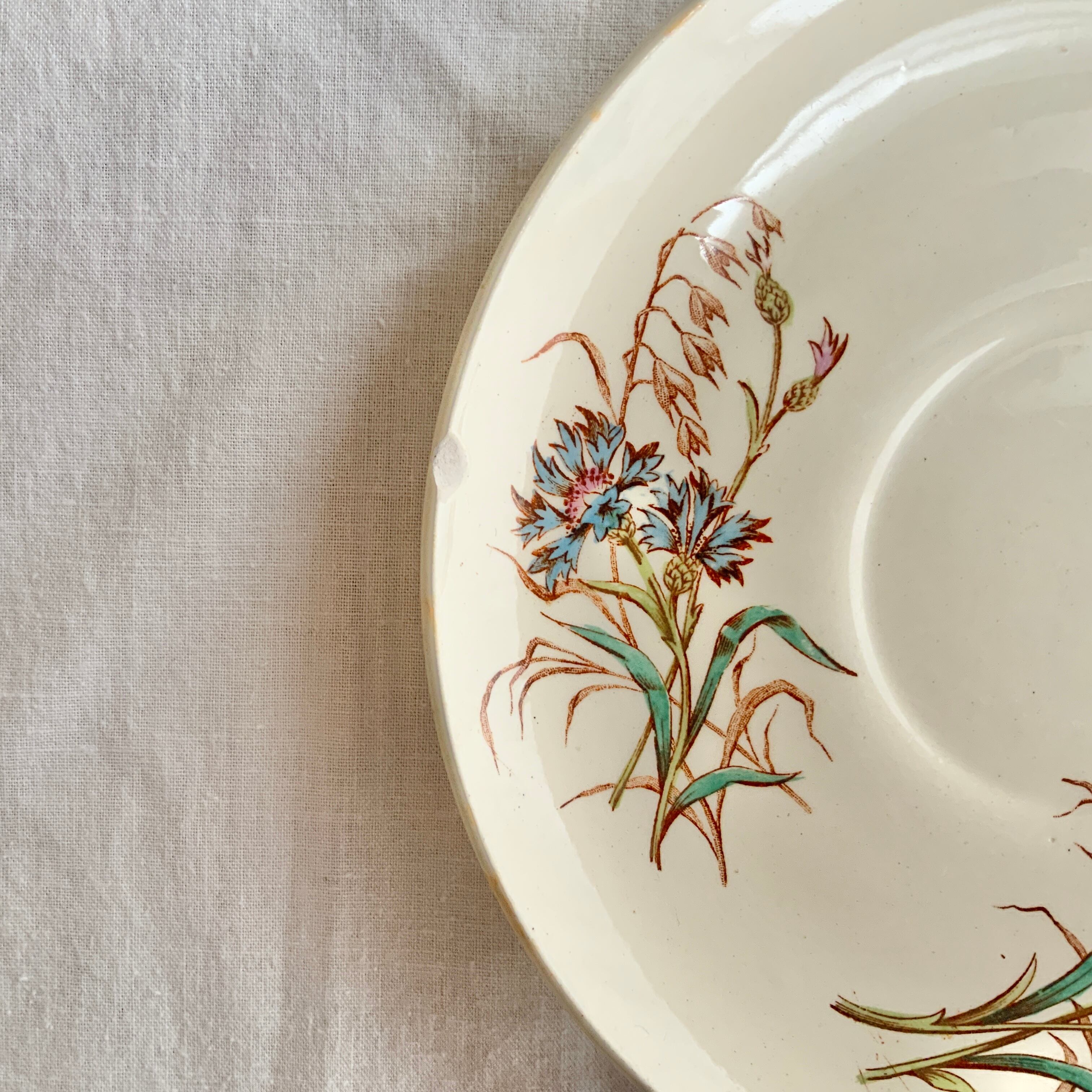 1800年代末〜1900年代初頭頃のLuneville、Bleuetシリーズのプレートです。ソーサーですがかなり大きいので、デザートプレートとしてお使いいただけます。