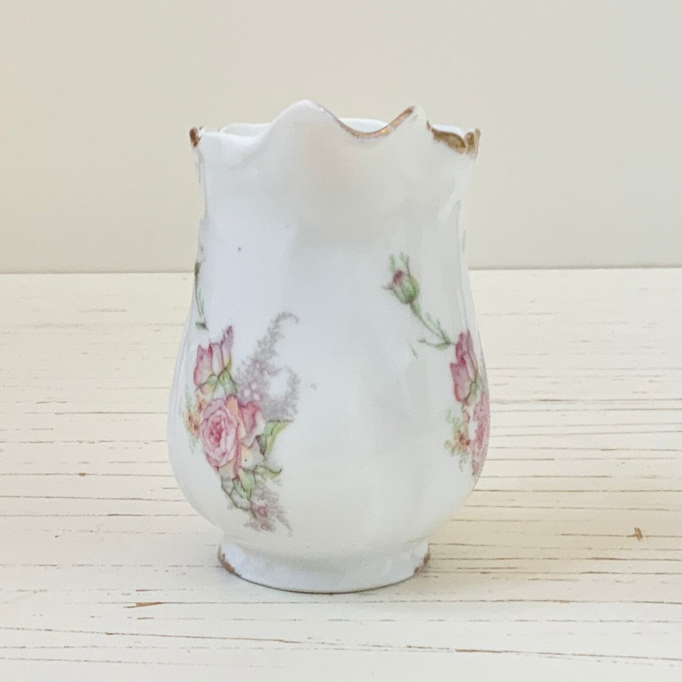 美しい白地に、淡い色合いのピンクのバラがとても愛らしく描かれています。