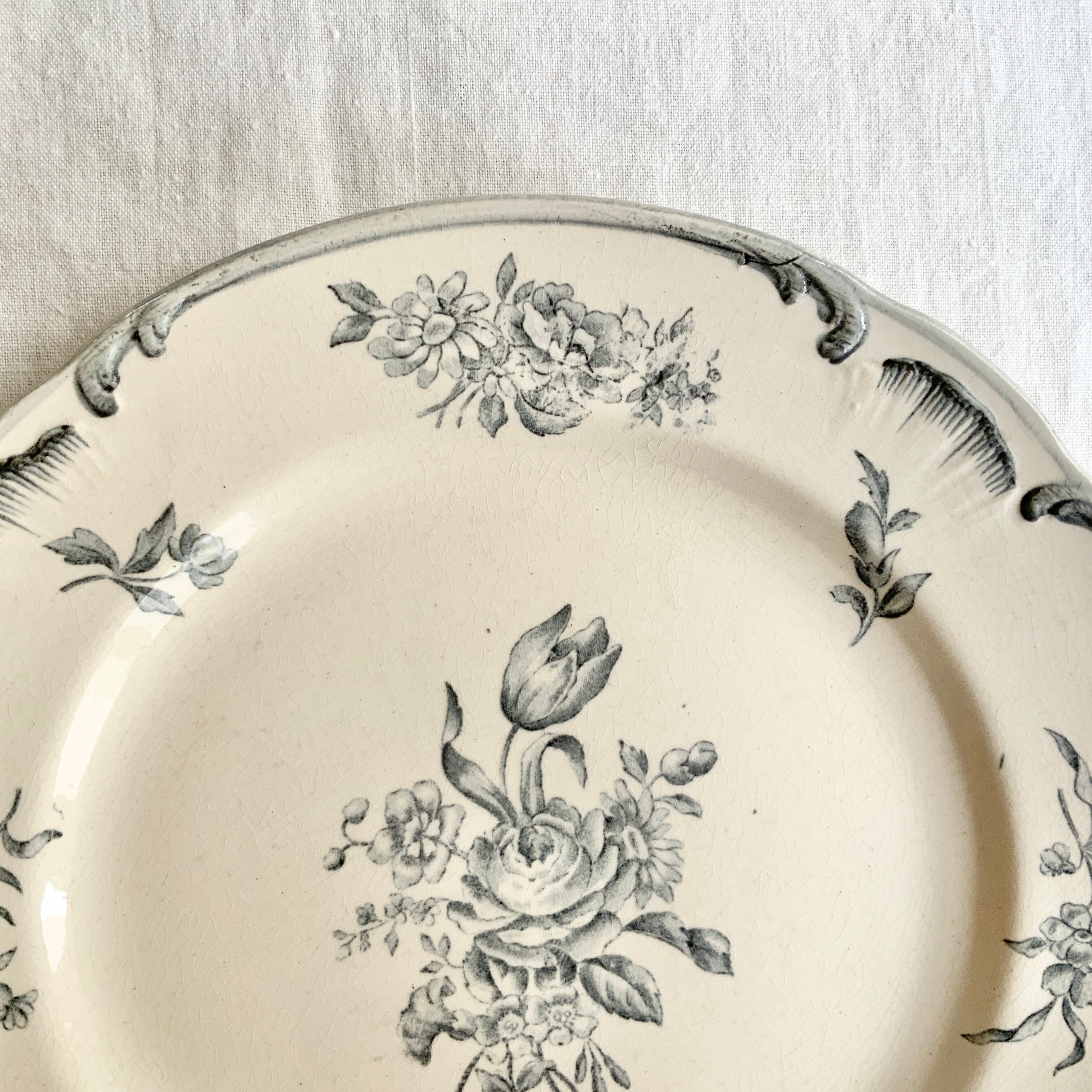 Longchamp グレートーンのロカイユと花束のプレート