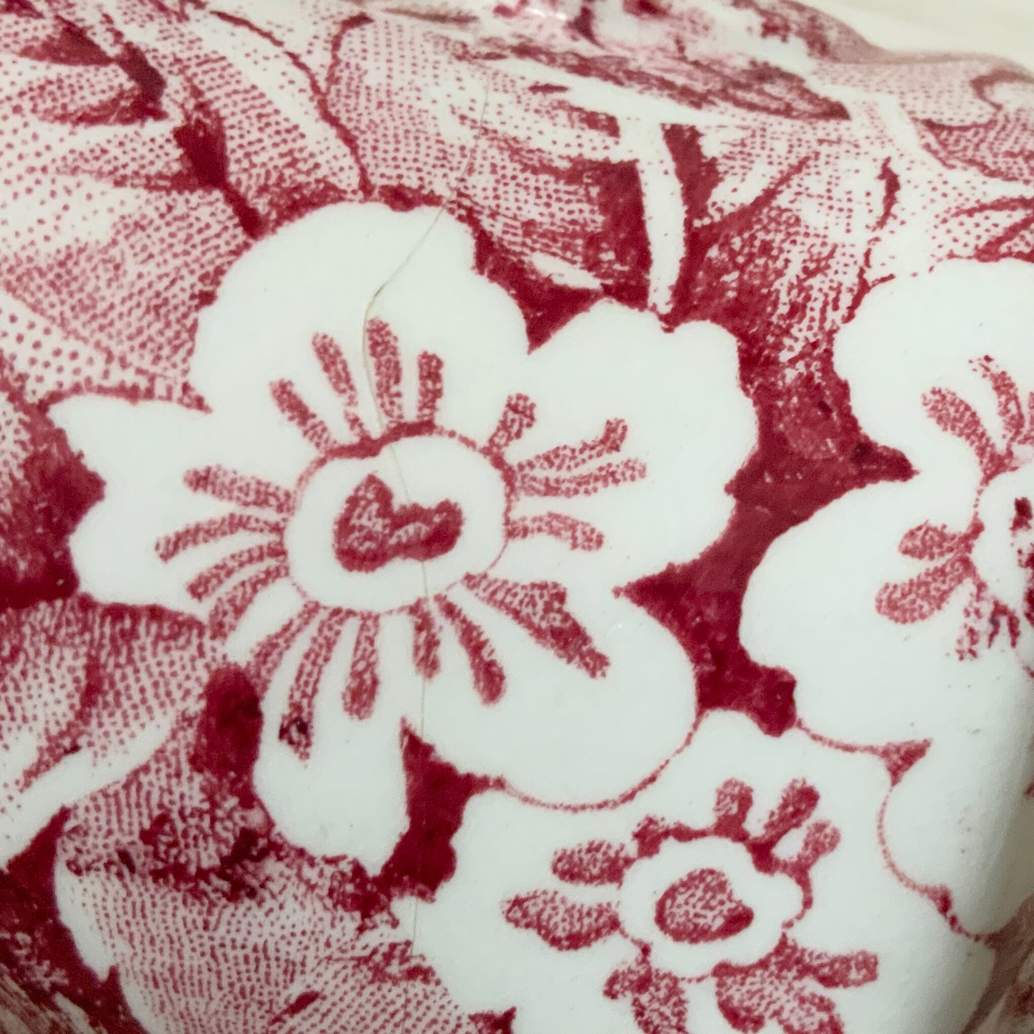 全体に赤色でたくさんのバラが描かれた、イギリスらしいチンツ柄です。
