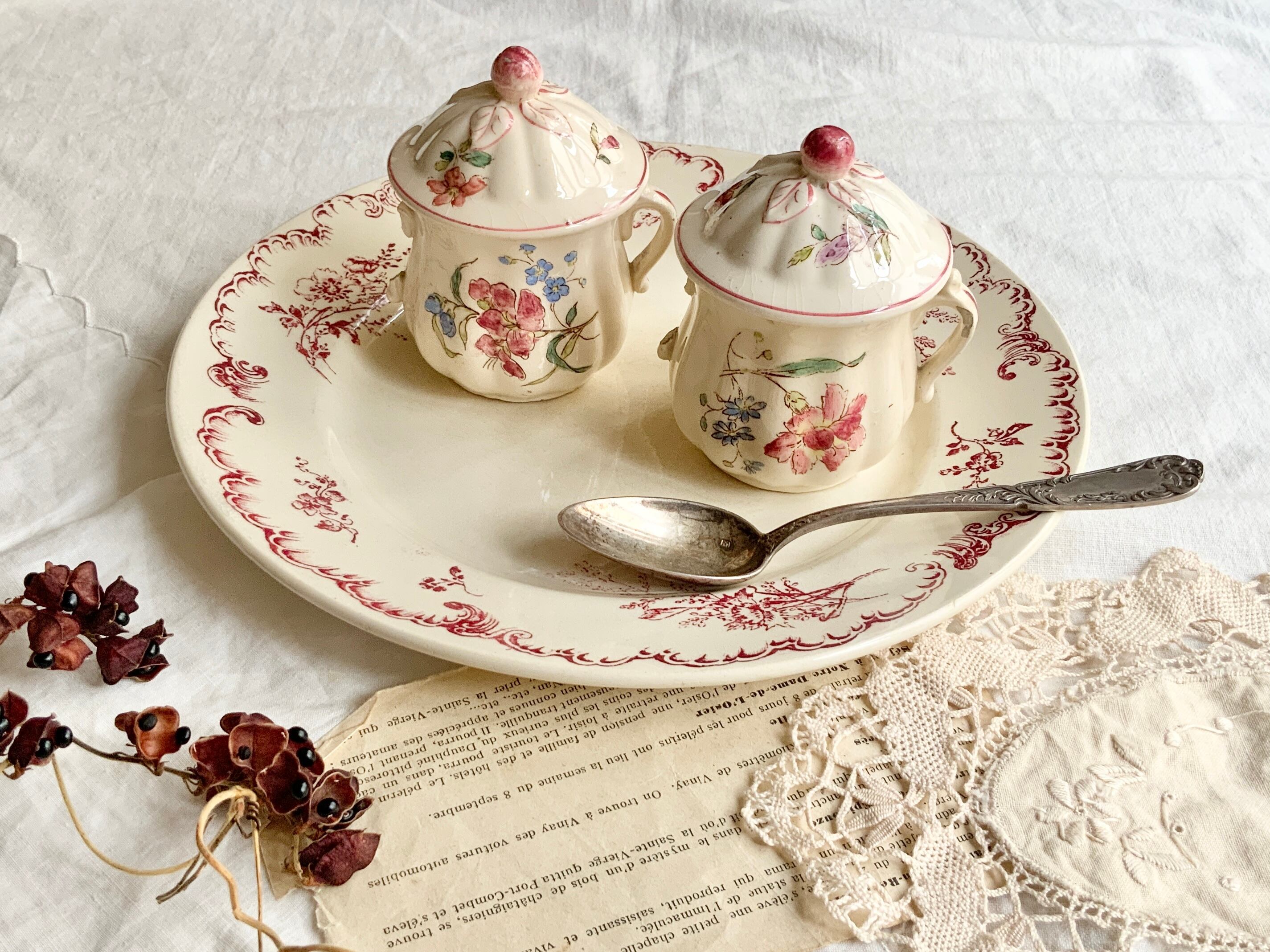 フレンチアンティークのシュクリエ/クリームポットです。マークはないですがおそらくLongchampのもの。