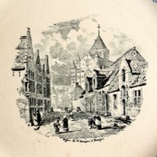 中世の街並みと人々の生活風景、プレート全体が薄くしっとりと枯れた感じが、素朴なやさしい雰囲気です。