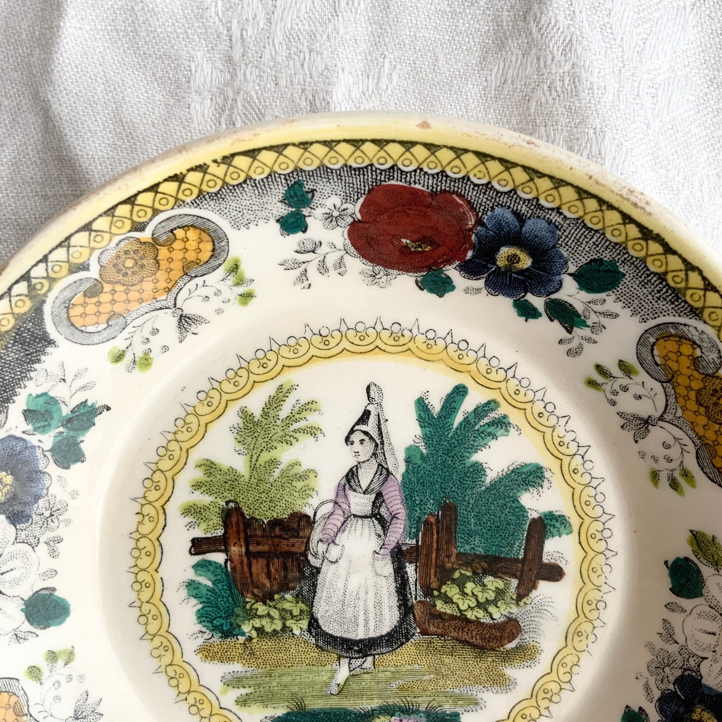 しっとりとした地色に、エナンを被った女の子が美しいグリザイユで描かれています。