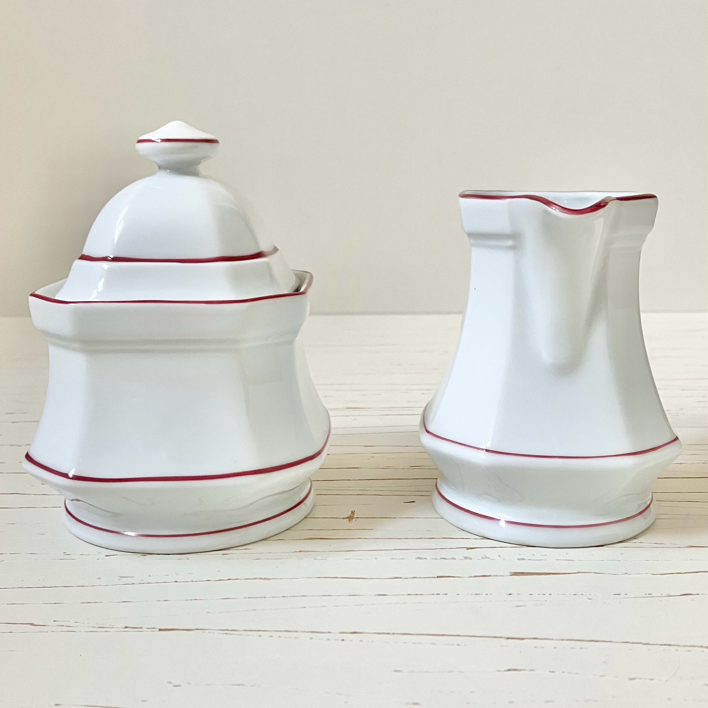 【セット】Bavaria ピンクラインのシュガーポット&クリーマー