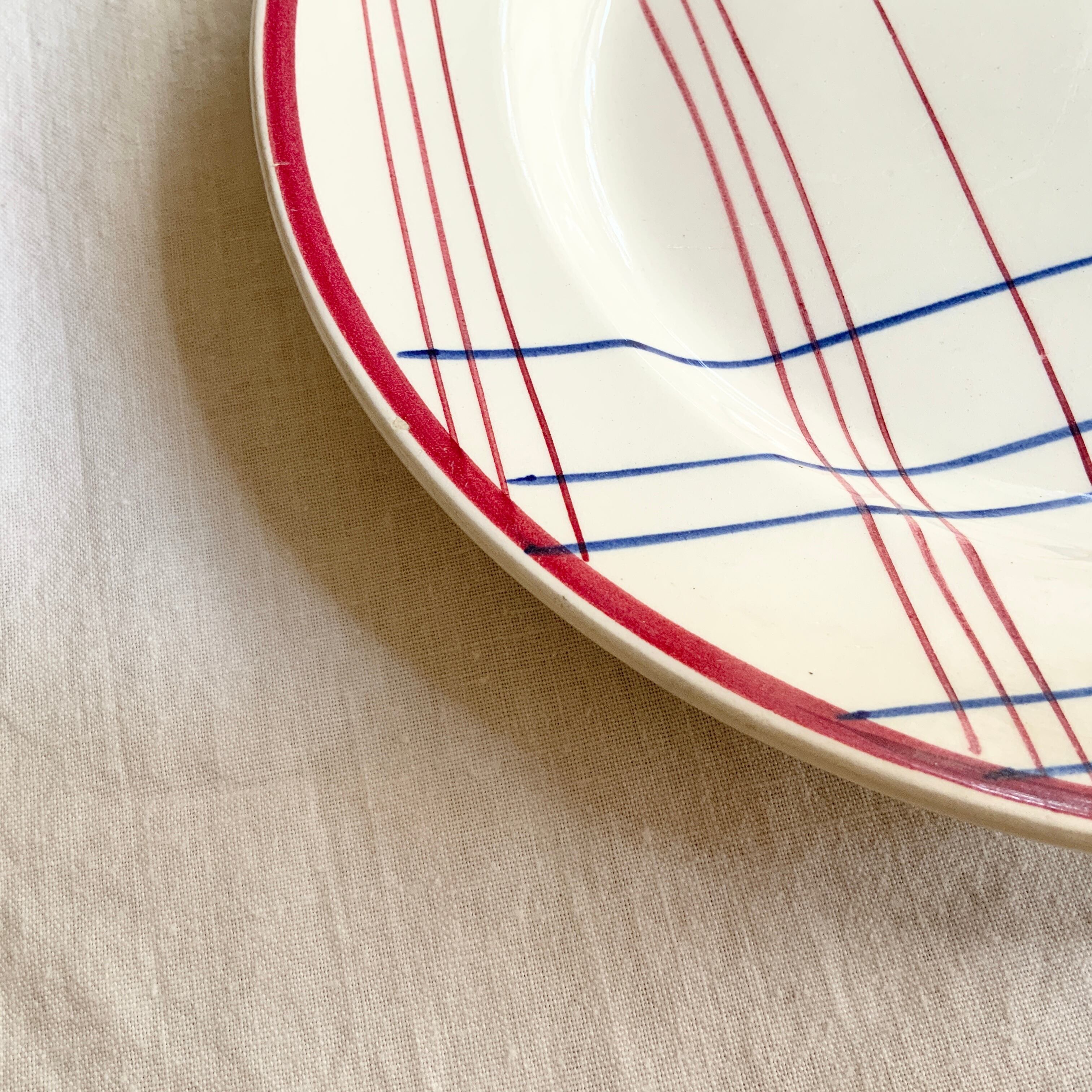 Gien トリコロールカラーのチェックプレート Brigitte B