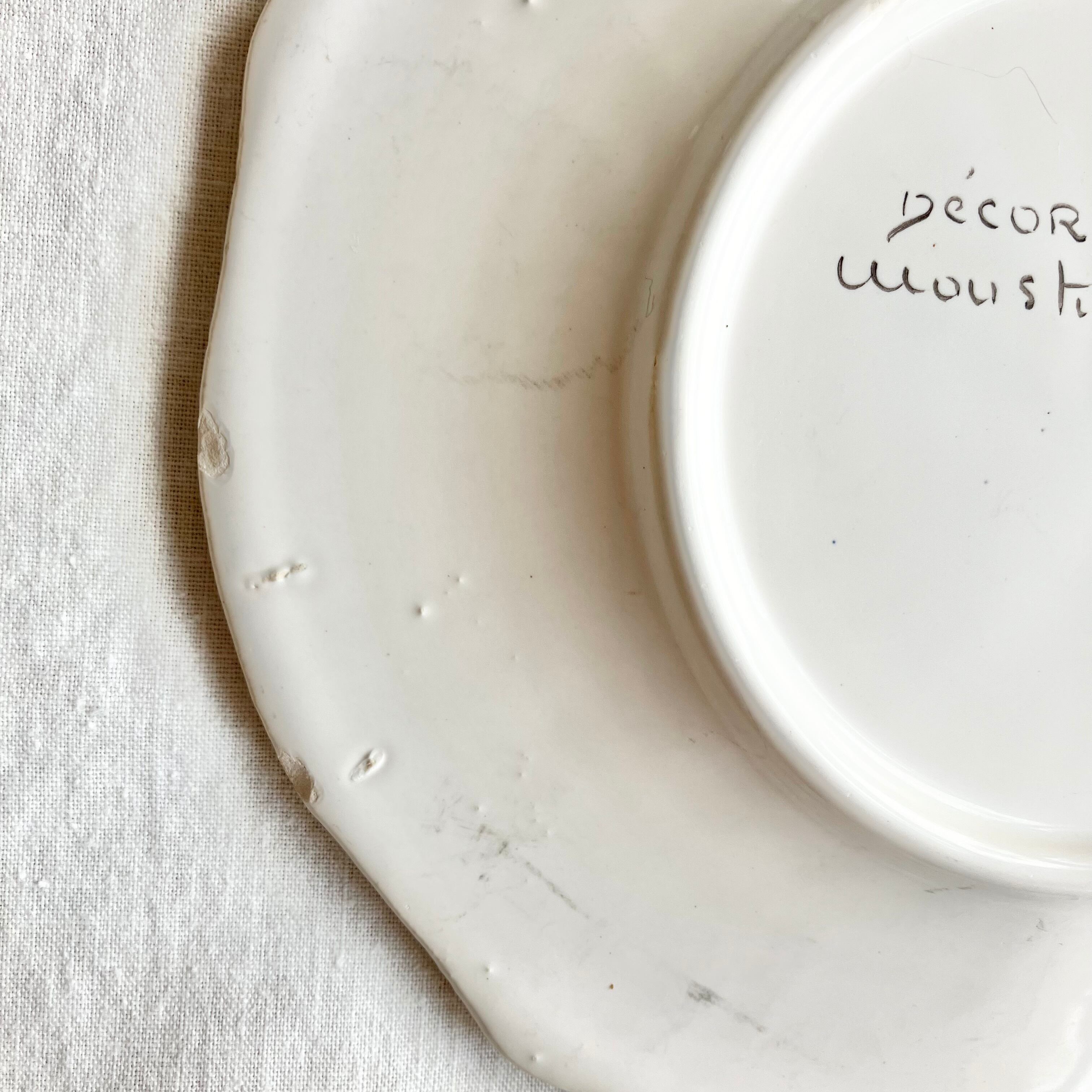滑らかな白地に、明るいグリーンとイエローで愛らしい小花が描かれています。縁はスカラップリムで、グリーンとイエローのラインと装飾で飾られています。
