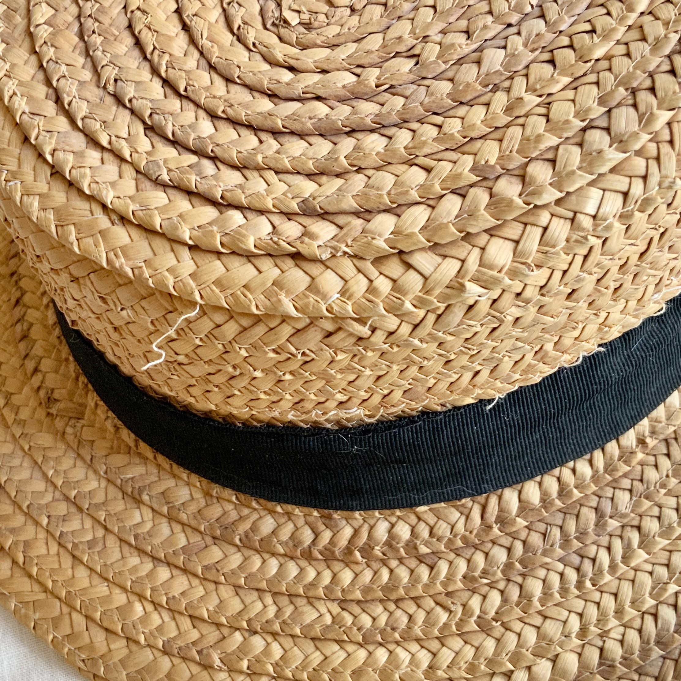 1800年代にヨーロッパで広がったカンカン帽のスタイルの中でも、フランスらしい黒いリボンがあしらわれた可愛らしい麦わら帽子です。