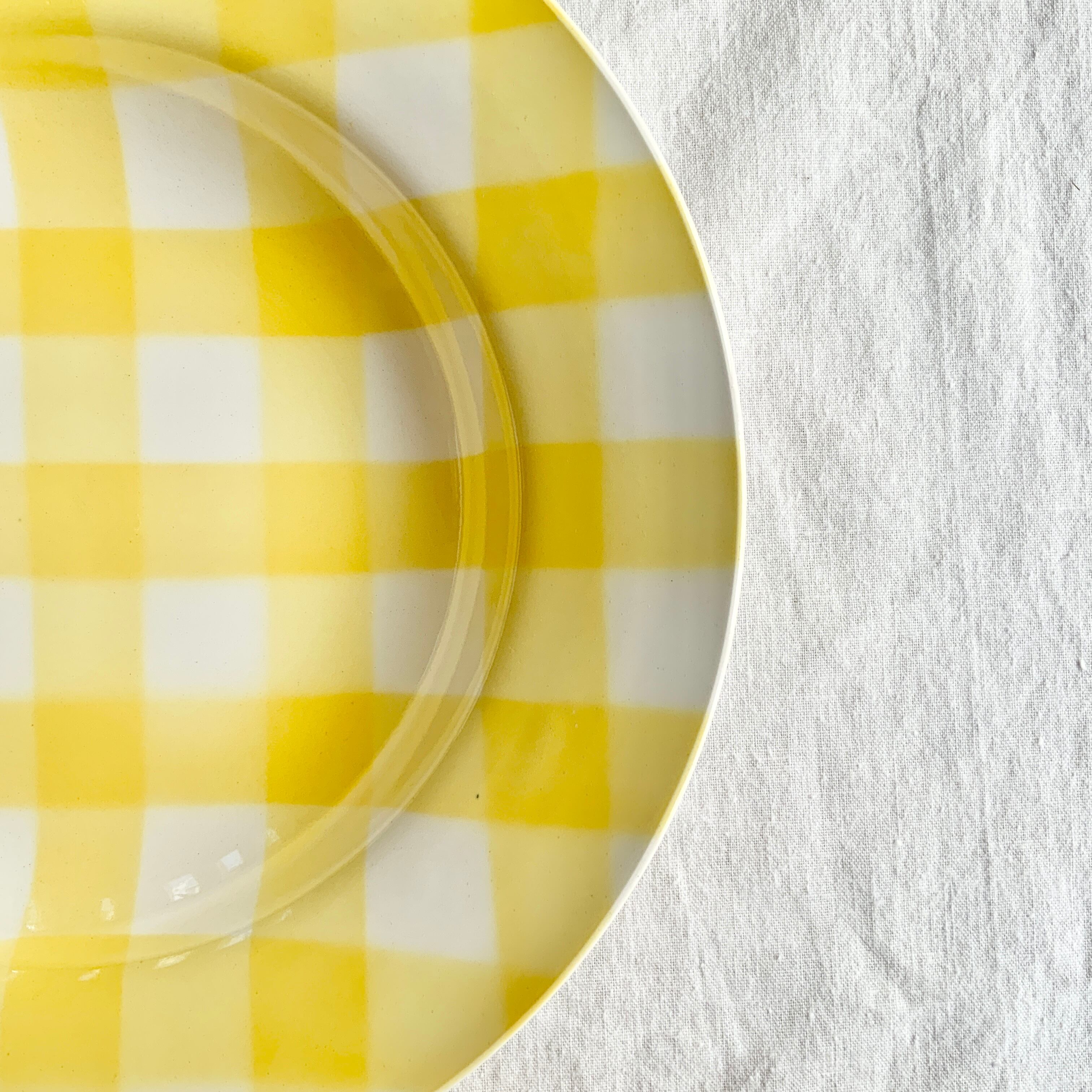 イエローの可愛いギンガムチェックがプレート全体に描かれています。