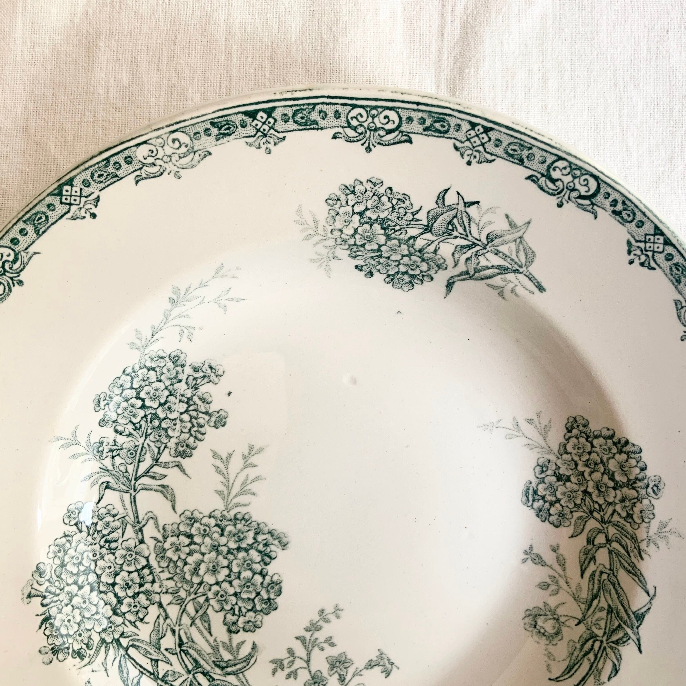 白地にグリーンで、愛らしいランタナがたくさん描かれた美しい一枚です。