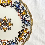 白地にブルーとイエローを基調とした、ルネッサンス様式の絵柄が美しくプレートを彩っています。