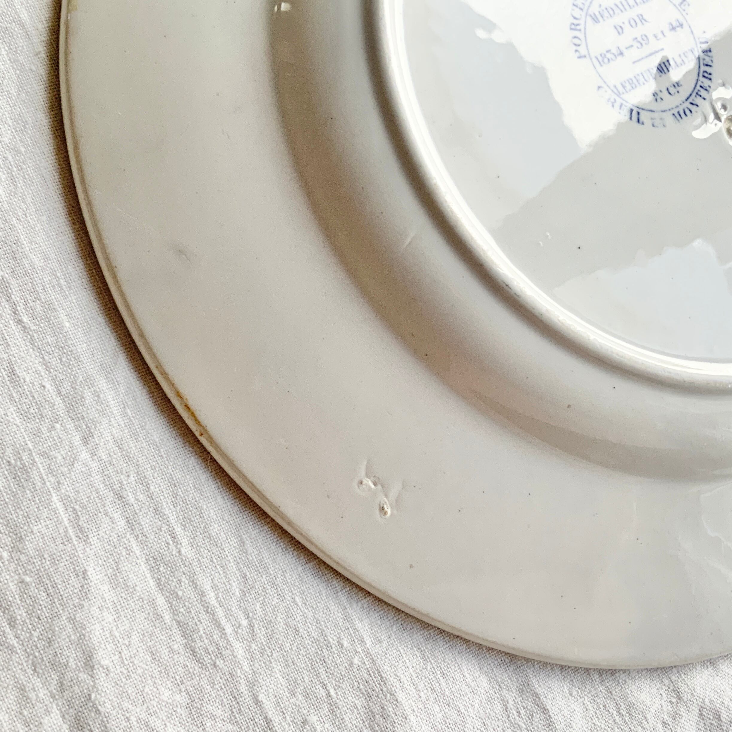 1800年代中期頃、Lebeuf Milliet経営時代のCreil et Montereauが手掛けたLa Passeシリーズのグリザイユプレートです。