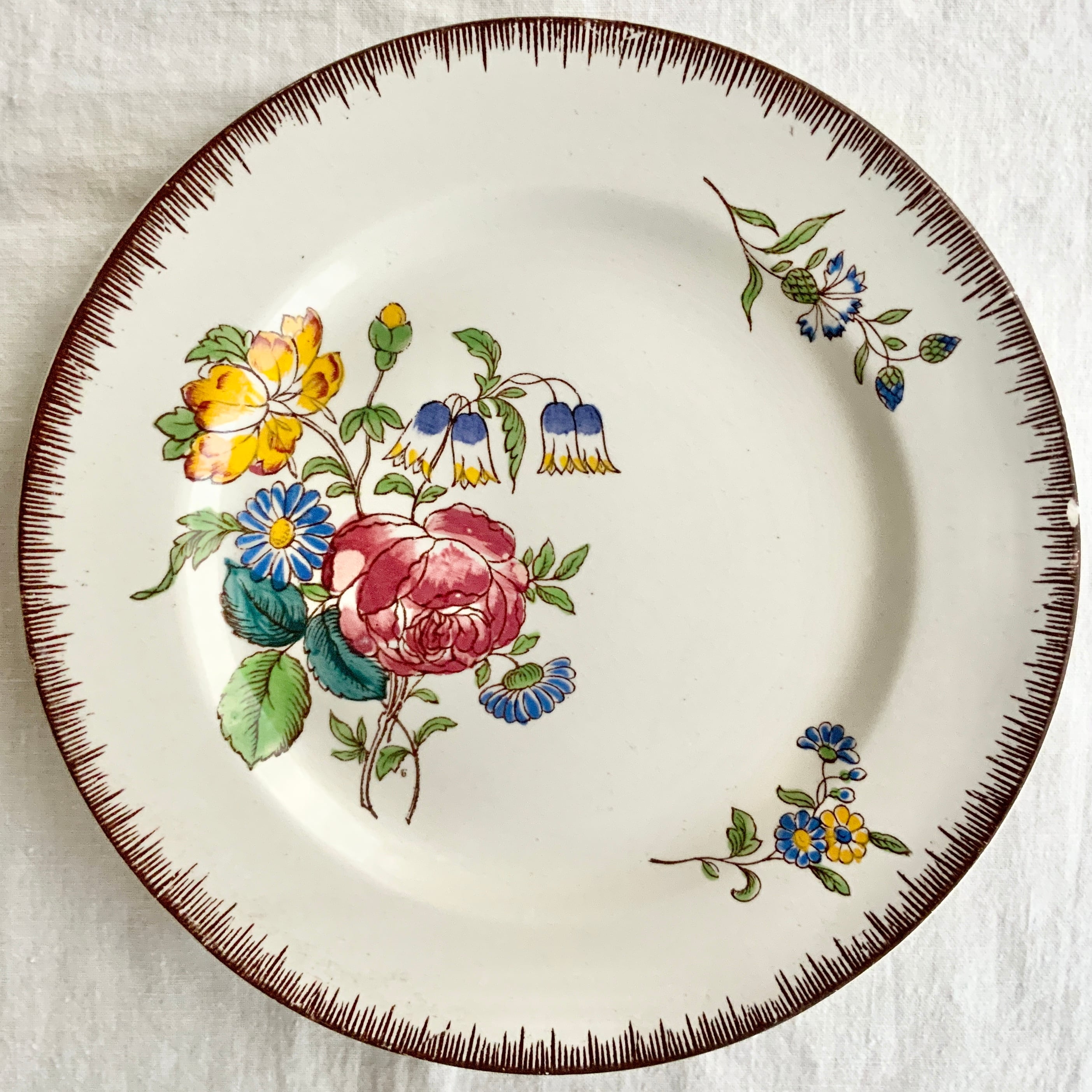 Clairefontaine 愛らしいバラのブラウンデザートプレート Strasbourg