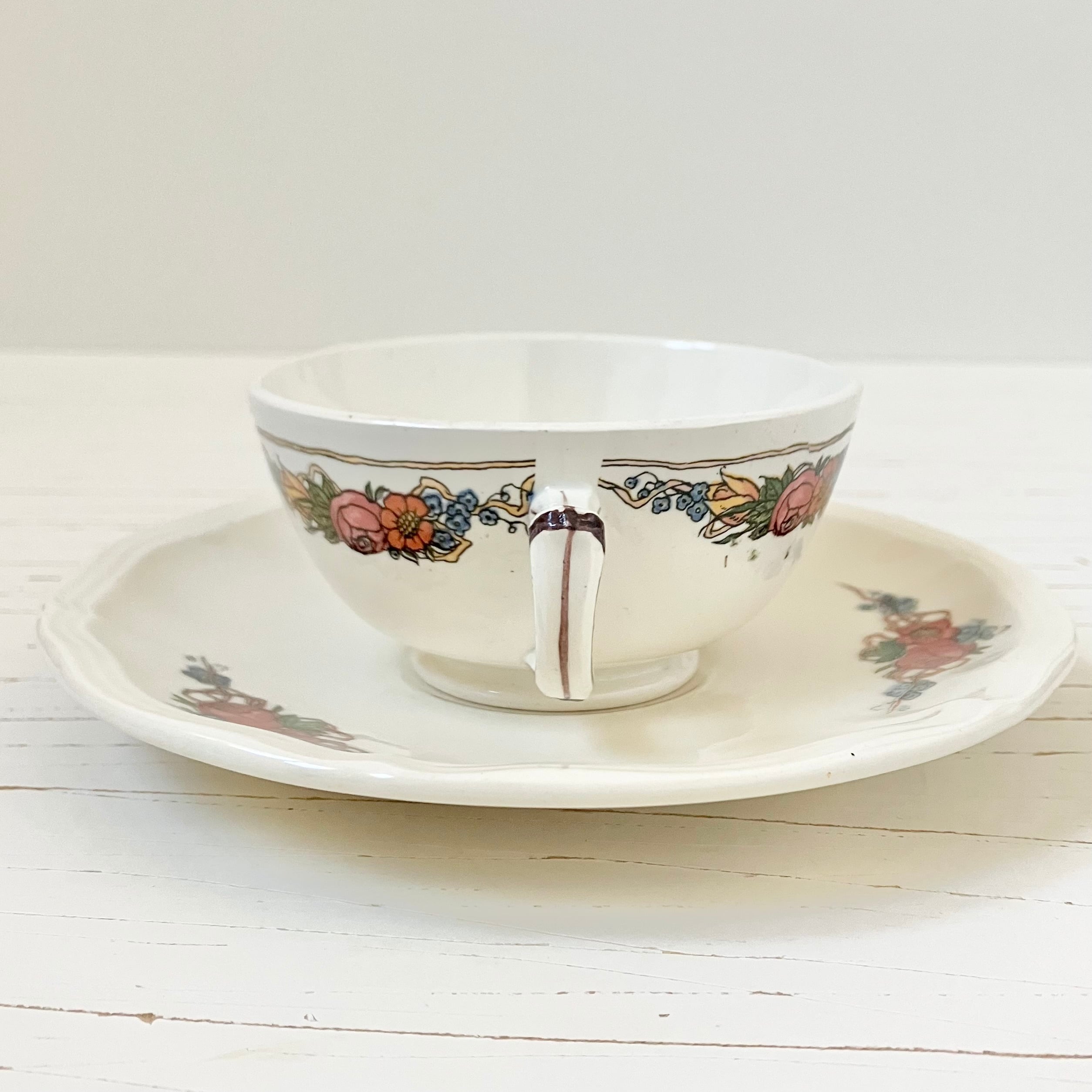 Sarreguemines リボンとバラのカップ&ソーサー Obernai B