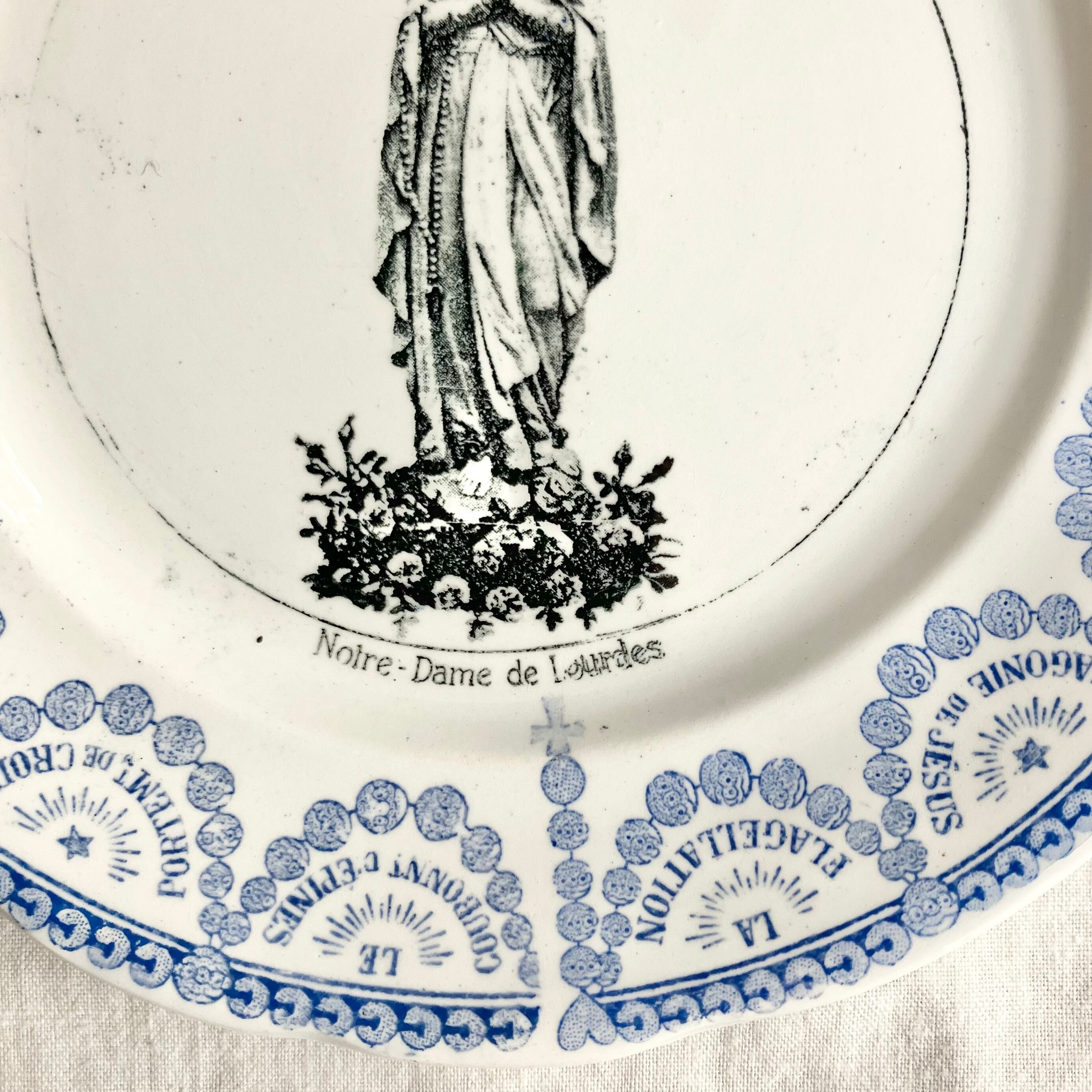 Sarreguemines 美しい聖母マリアのグリザイユプレート Lourdes