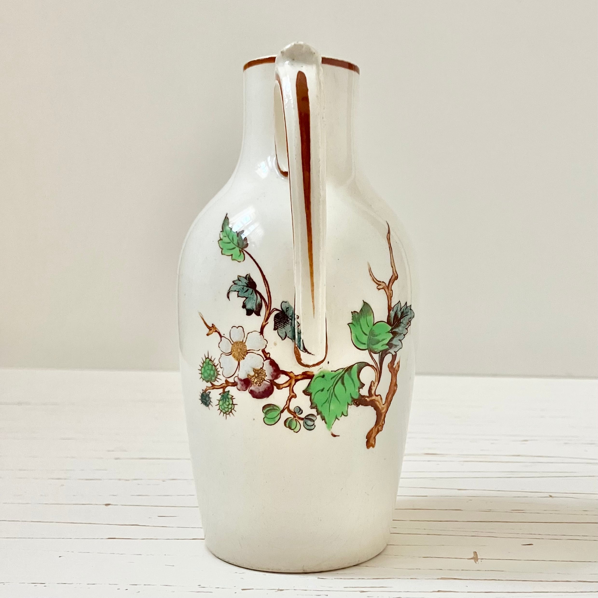 やわらかい乳白色にとてもふっくらした、可愛らしい青い小鳥が描かれています。正面には梅の花、裏面には木苺の枝木が大変美しく描かれ、お花の部分はエナメル絵付けが施され、ぷっくりとしています。