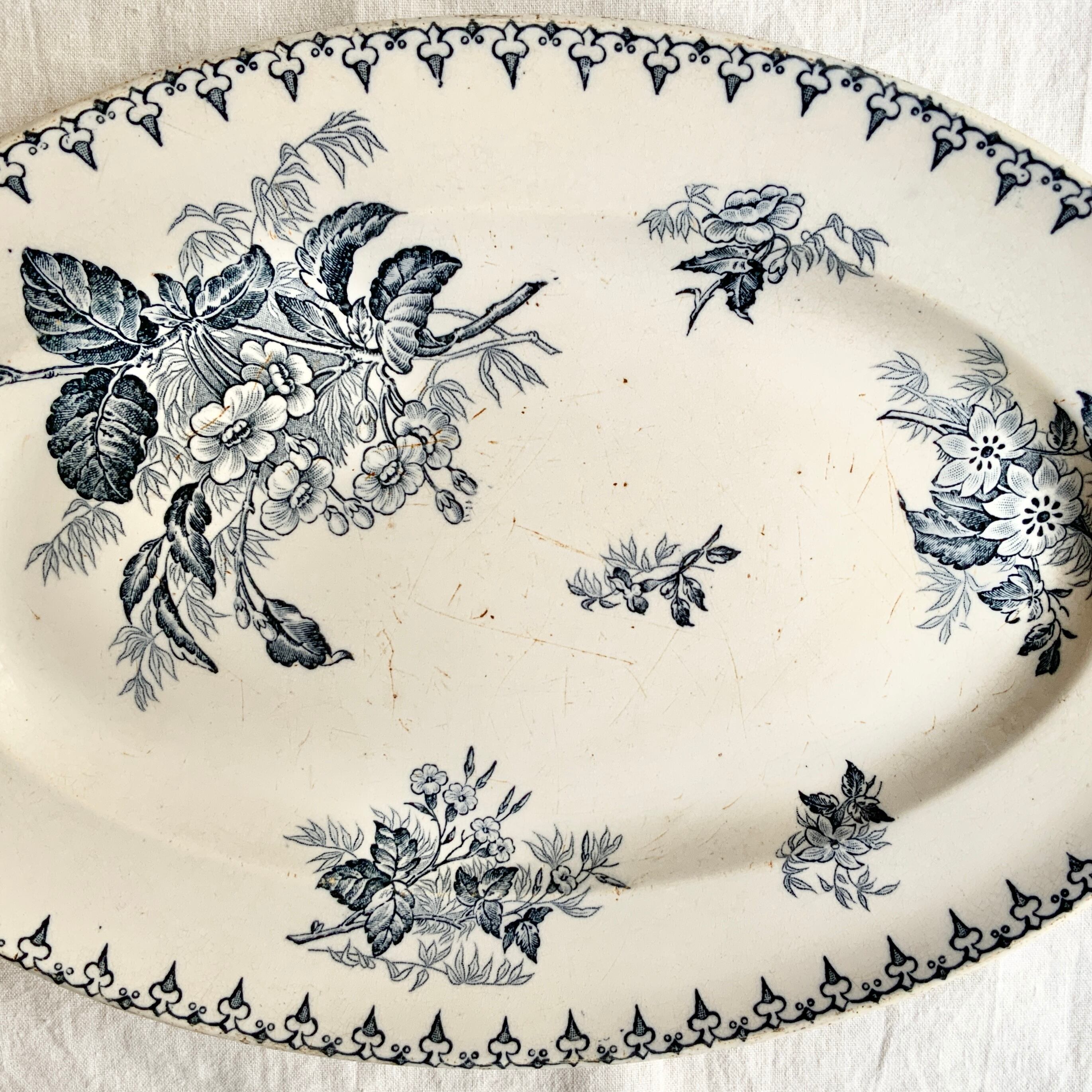 1800年代末〜1900年代初頭頃のSarreguemines、Floreシリーズのオーバルプレートです。