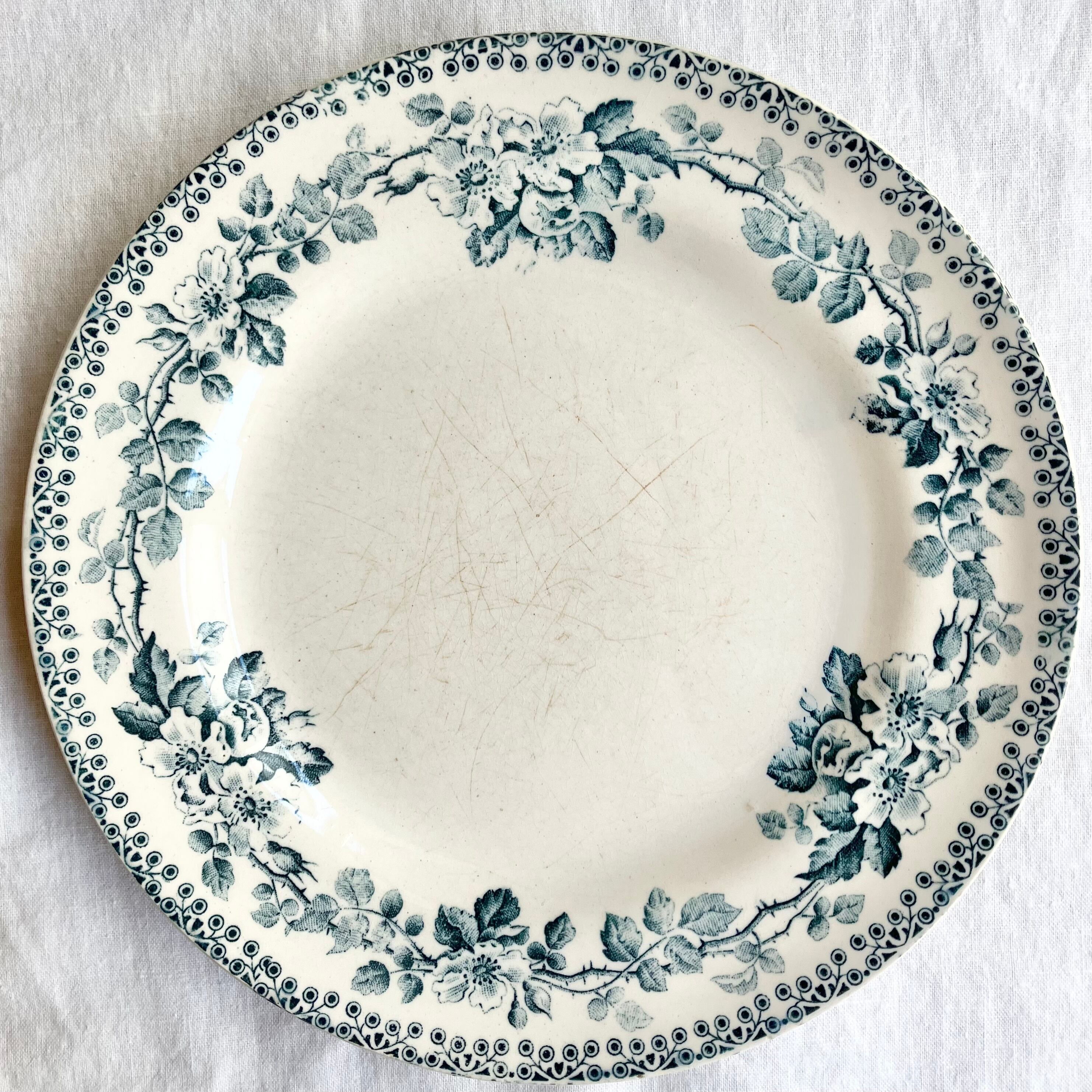 やわらかい乳白色に、美しいアンティークグリーンで野バラのガーランドがぐるりと描かれています。